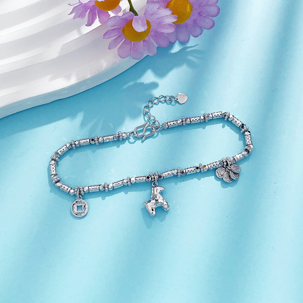 【限时8.8折】【线上铂金馆】PT950 #CNC #招财进宝 铂金空心调节马上有钱木马金币日进斗金字牌流苏筒珠手链(内为铂金链)(PTSL00020)预售产品下单后不退款不退货不换货不补差价)