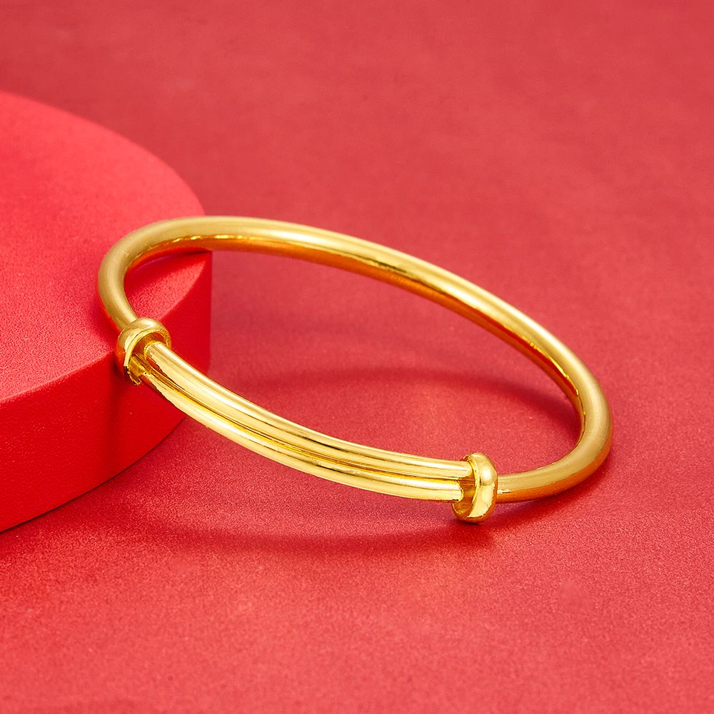 【限时克减150元】足金999.9 (面宽约4.2-4.6mm)空心手镯光面推拉手镯光圈推拉手镯素圈推拉手镯圆管推拉手镯(HWSZ00001-01)(预售产品下单后不退款不退货不换货不补差价)
