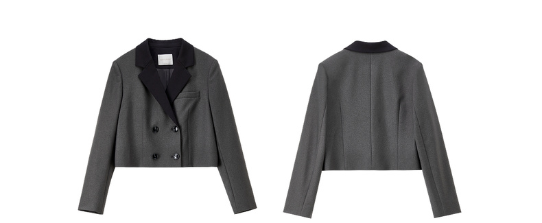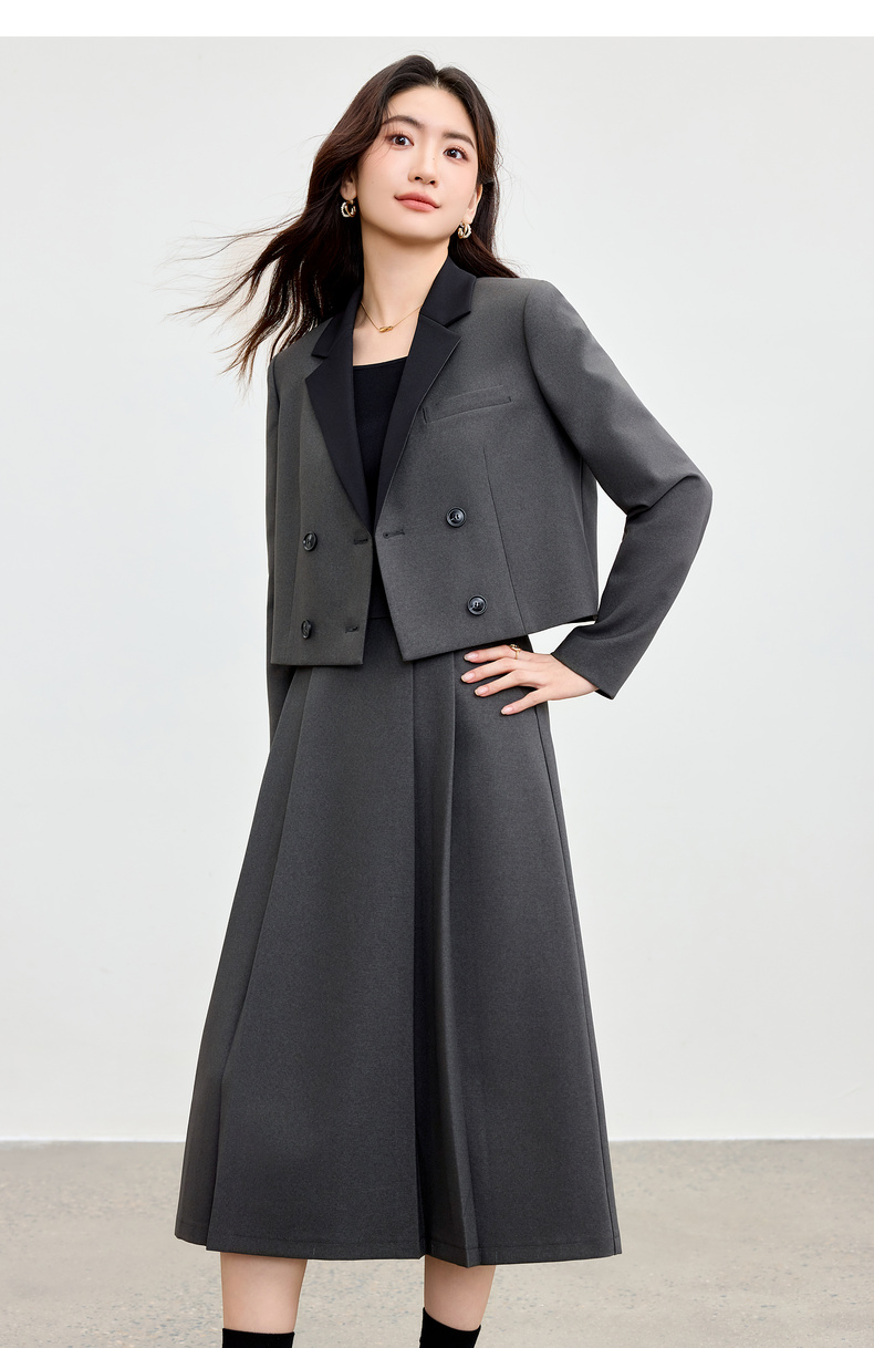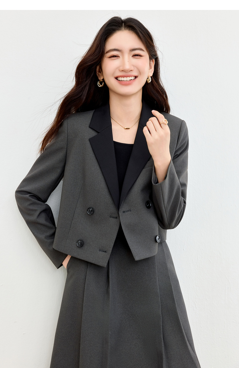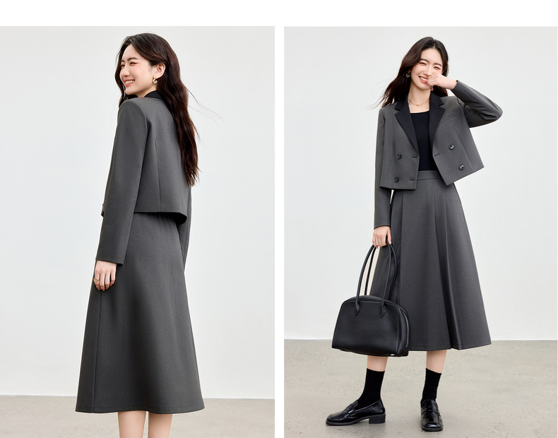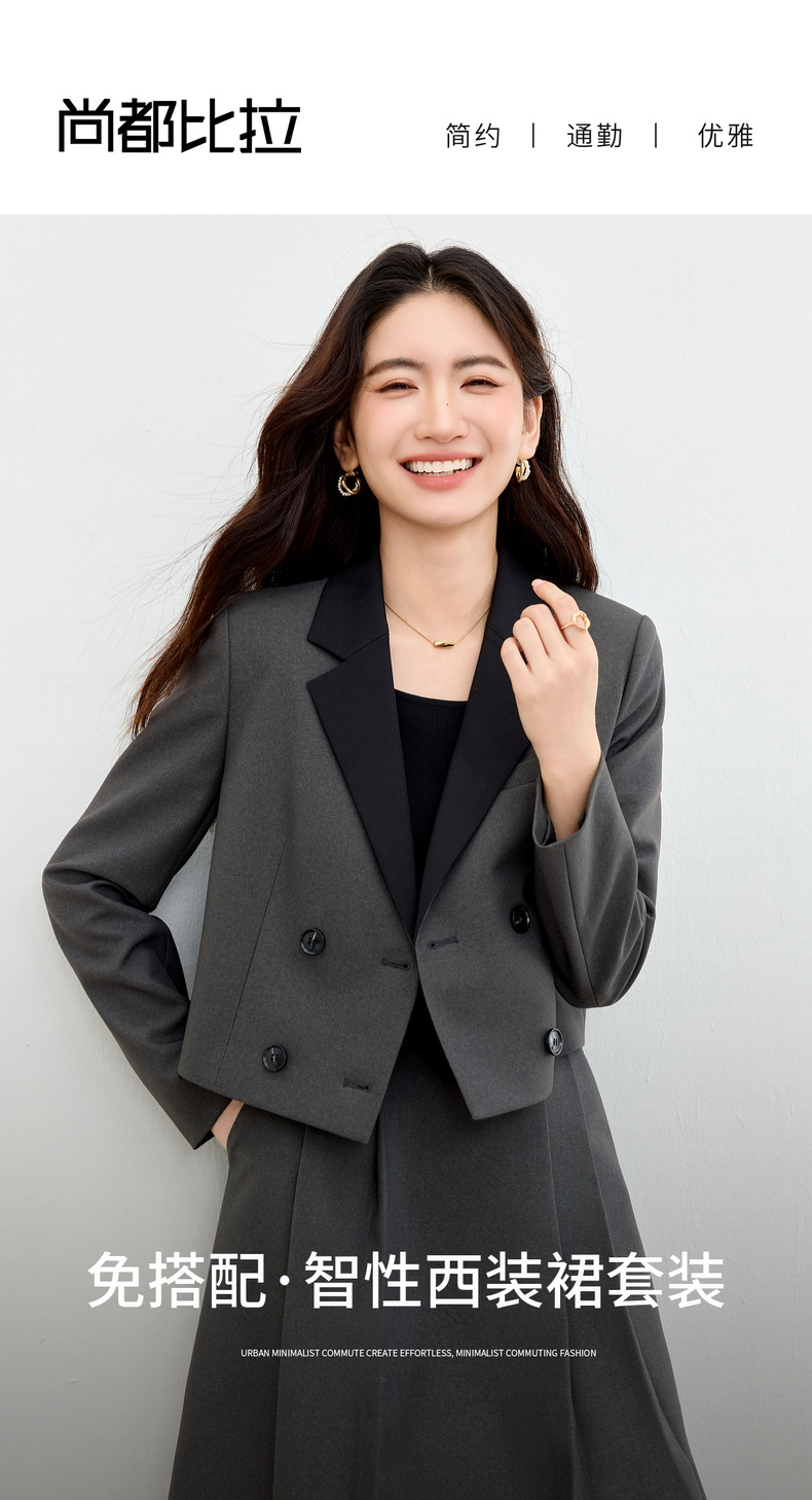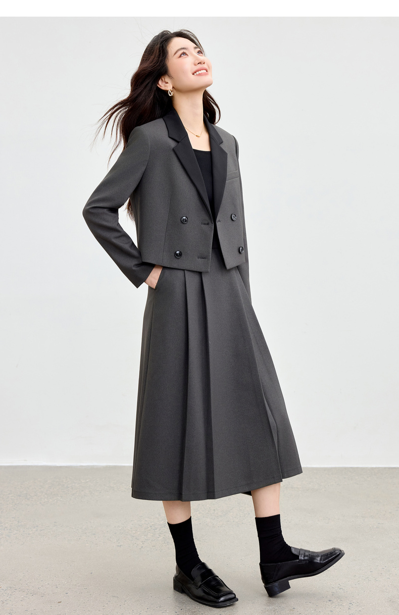 【内购】【免搭配套装】智性撞色翻驳领双排扣垫肩短西服&松紧腰西装半裙-153ZA2515