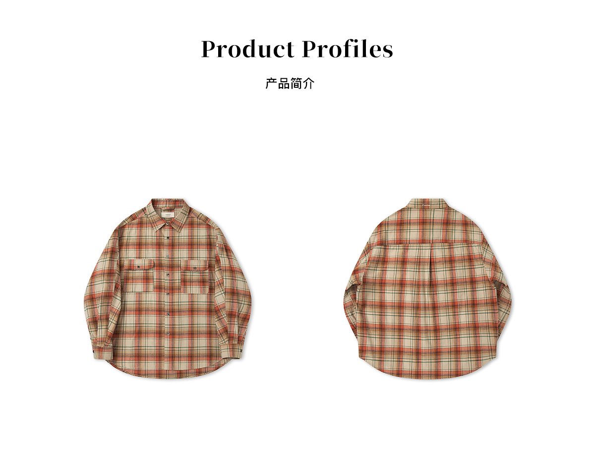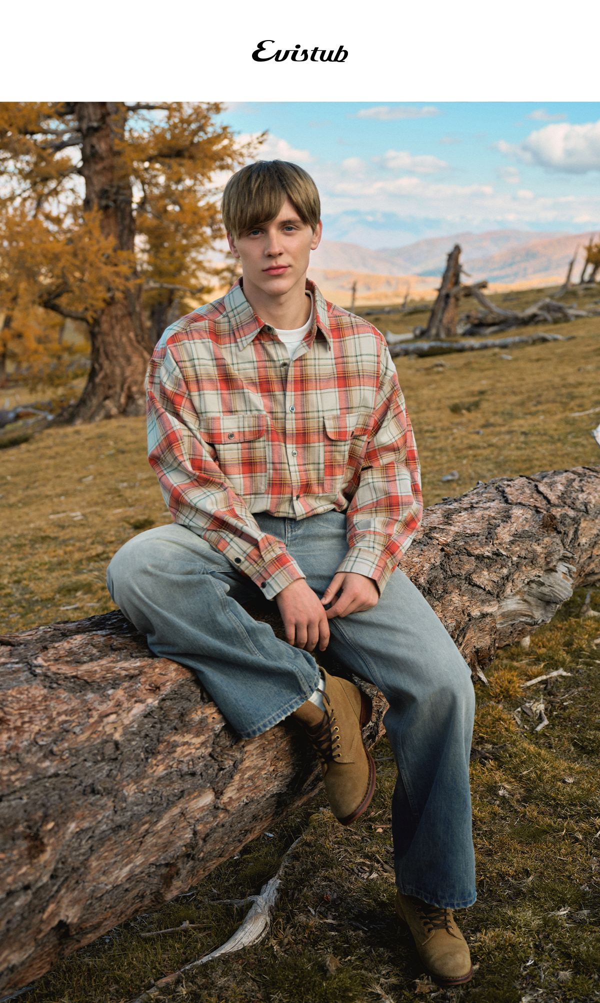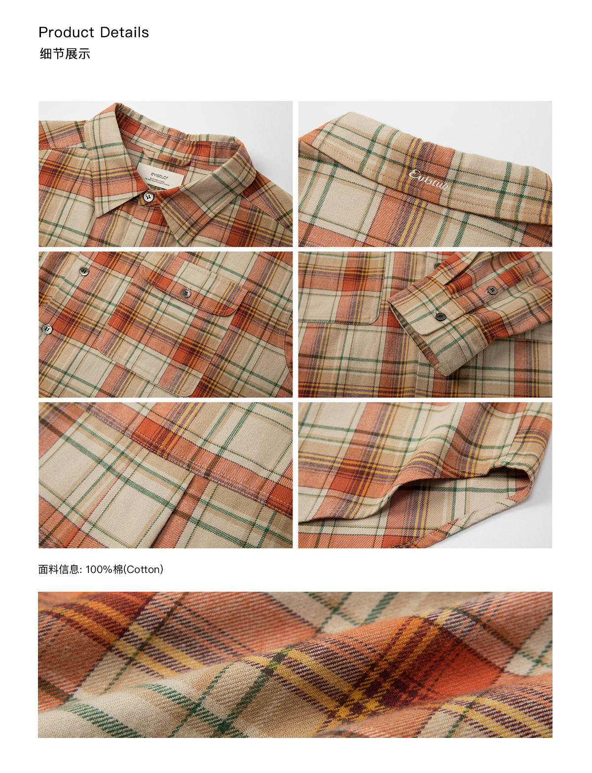 Evistub/E-4DCS996/色织布刷毛美式复古日系红格子口袋衬衫