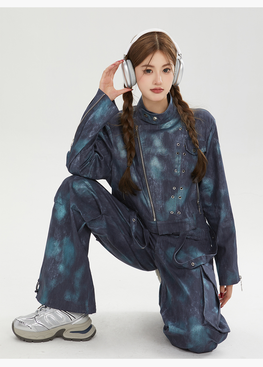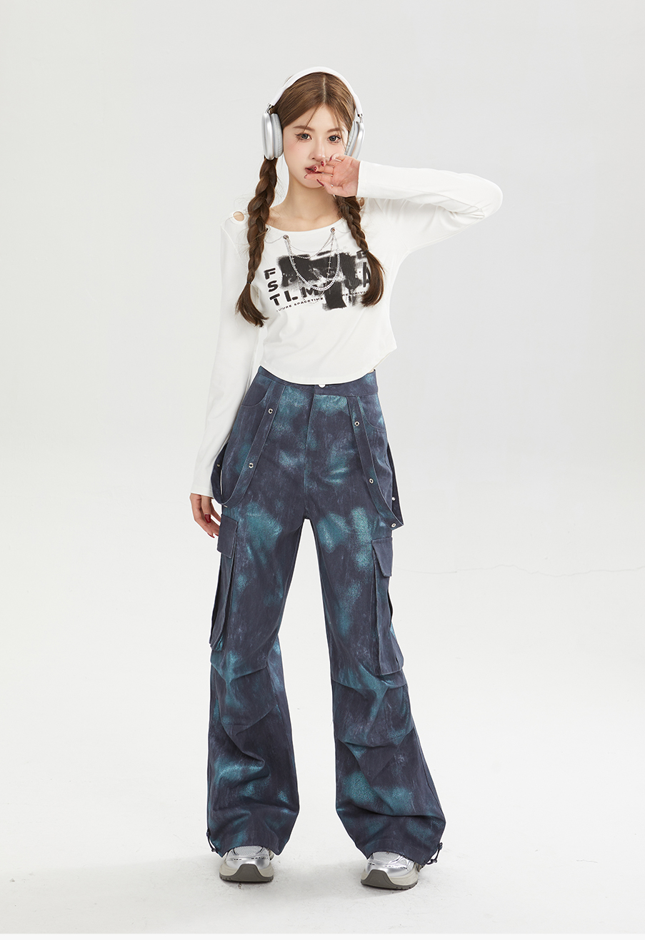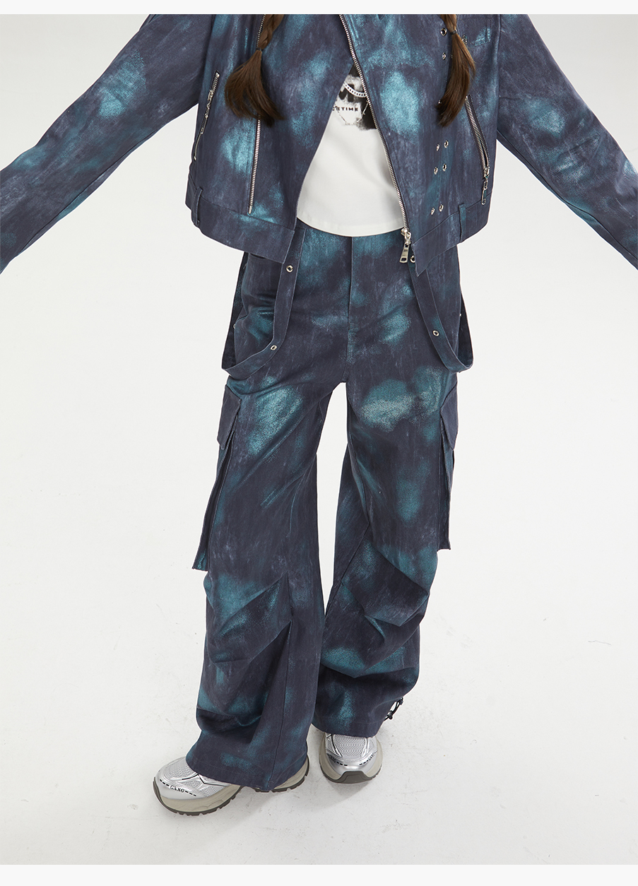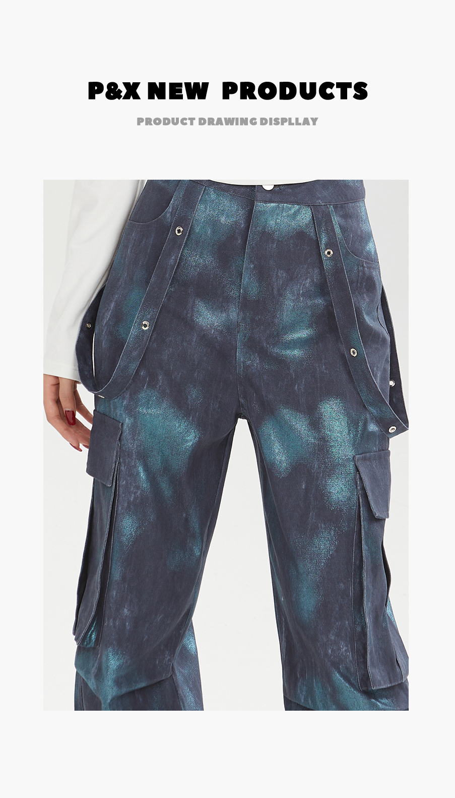 P&X设计师女装秋季扎染微潮高街迷彩阔腿休闲长裤824309288 宝蓝