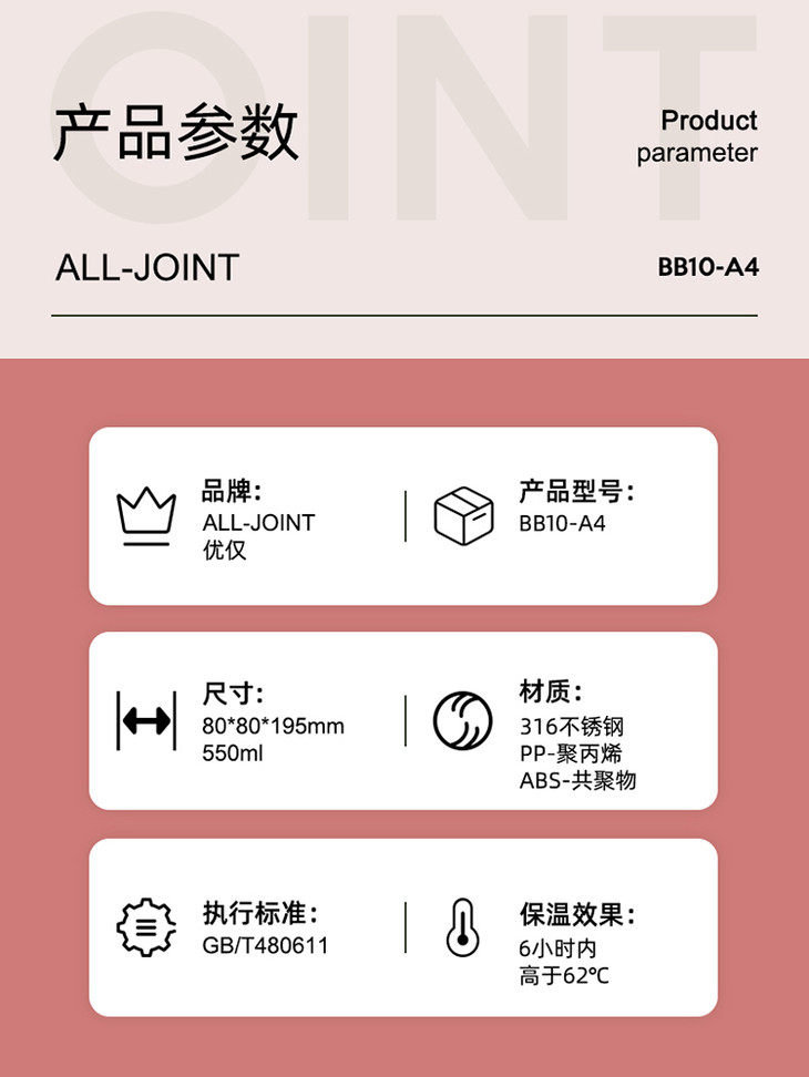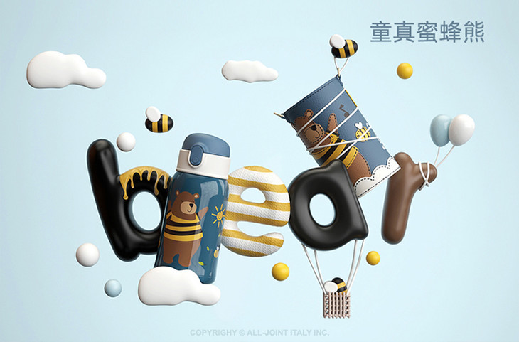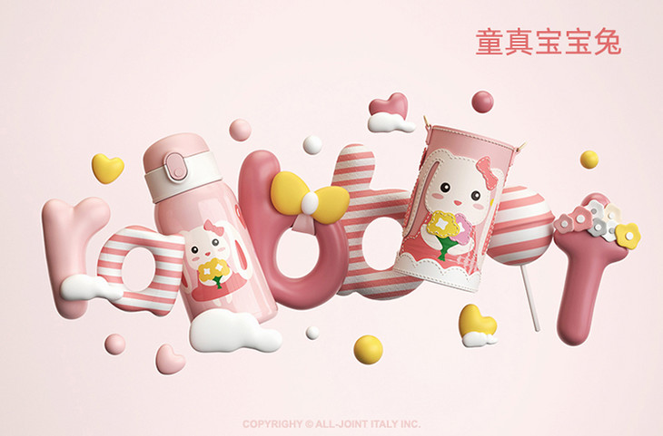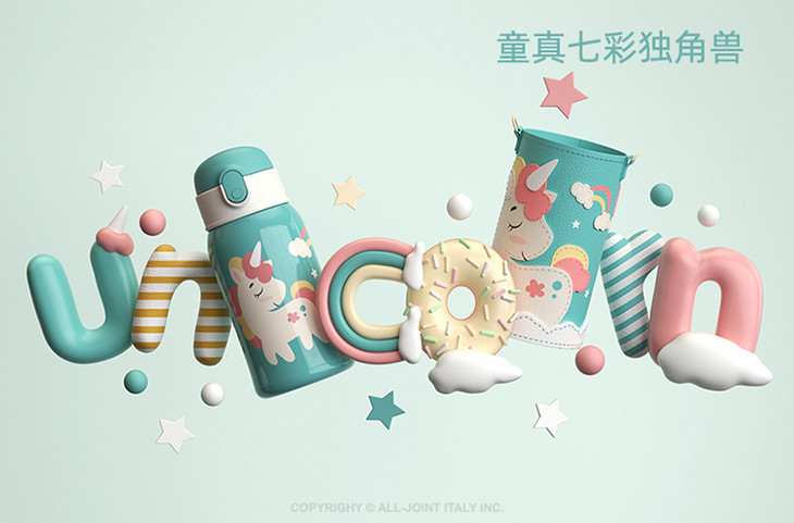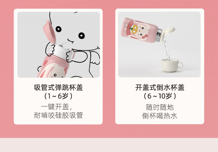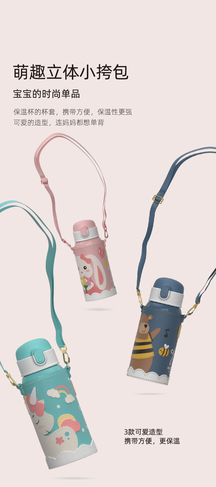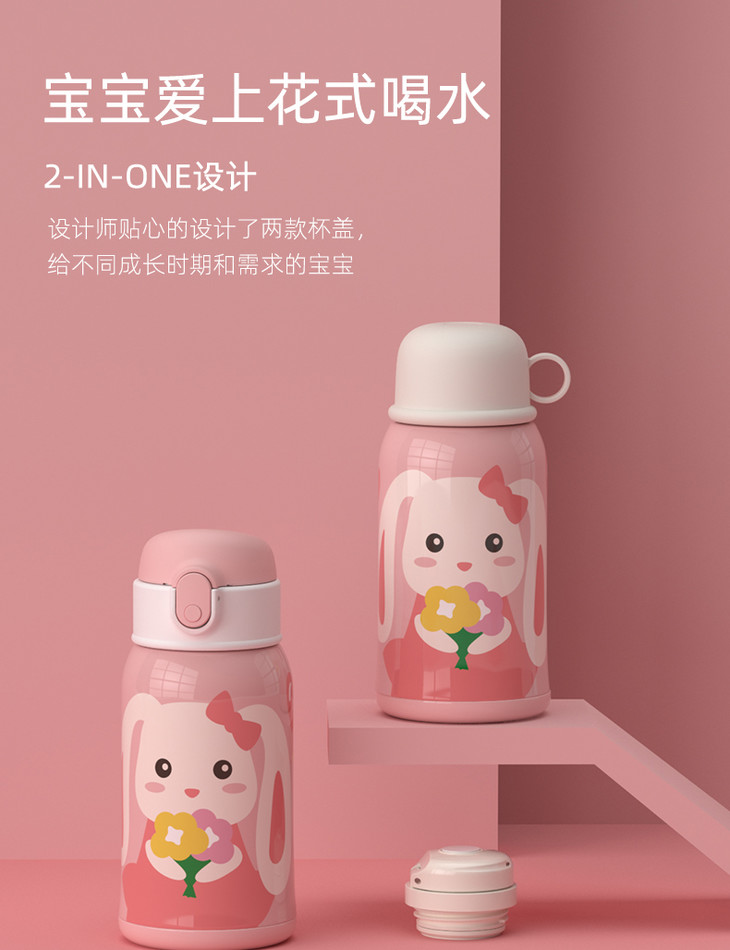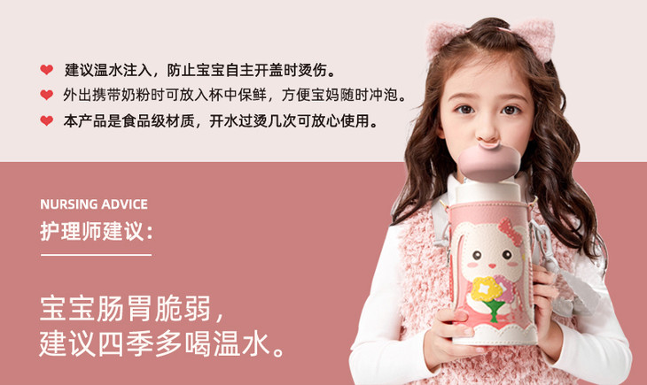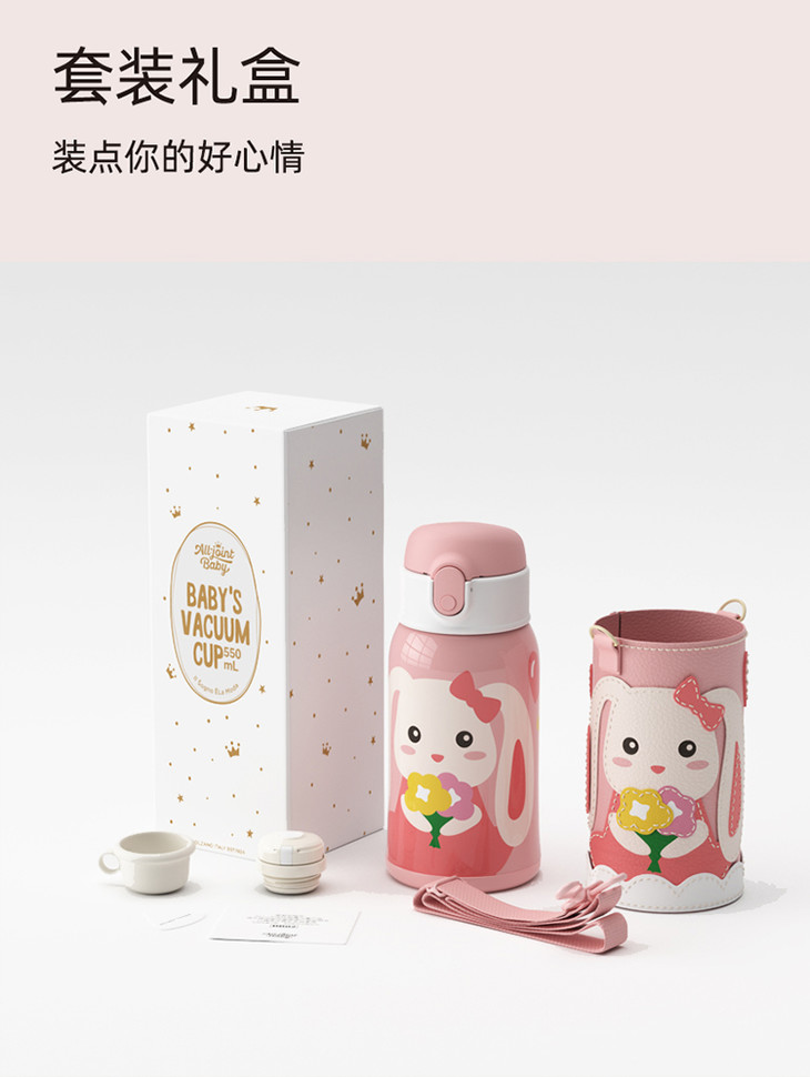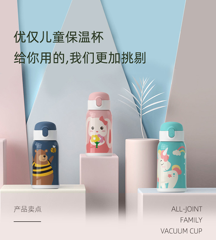 优仅儿童宝宝斜挎保温杯大容量可爱幼儿园水壶皮套双盖550ml【ALL-JOINT】