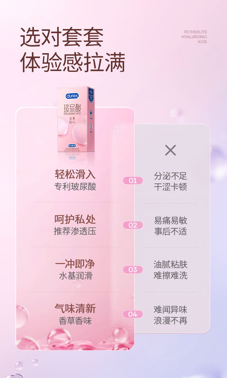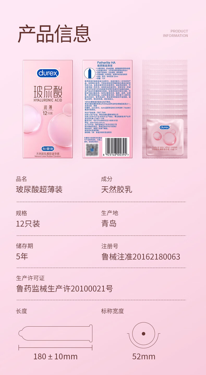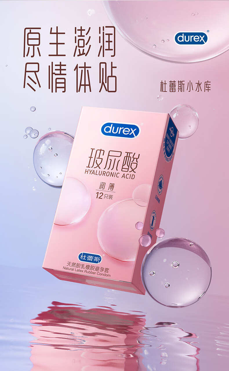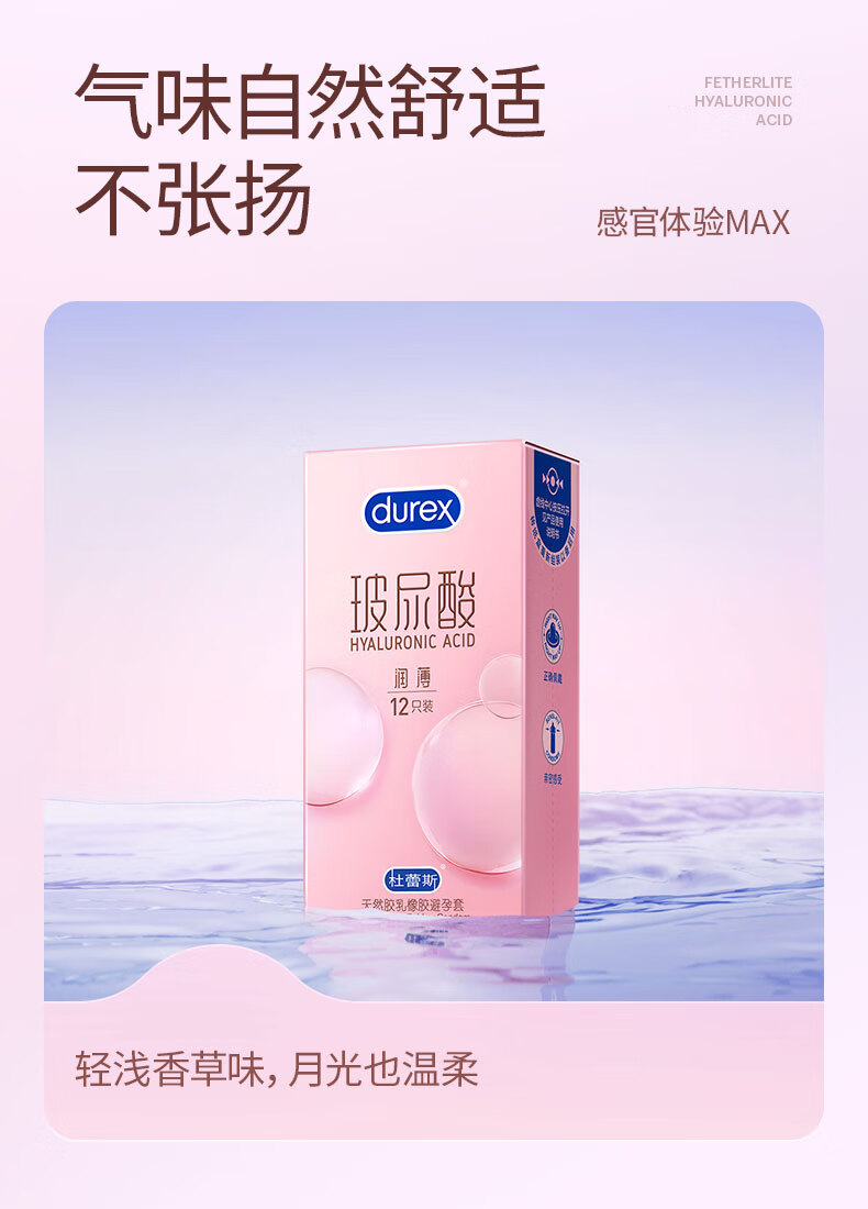 Durex/杜蕾斯 天然胶乳橡胶避孕套(玻尿酸超薄装) 12只装/盒