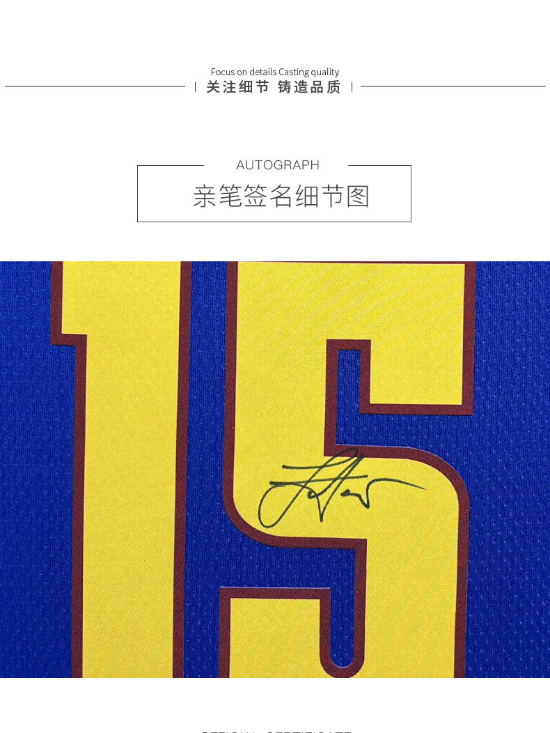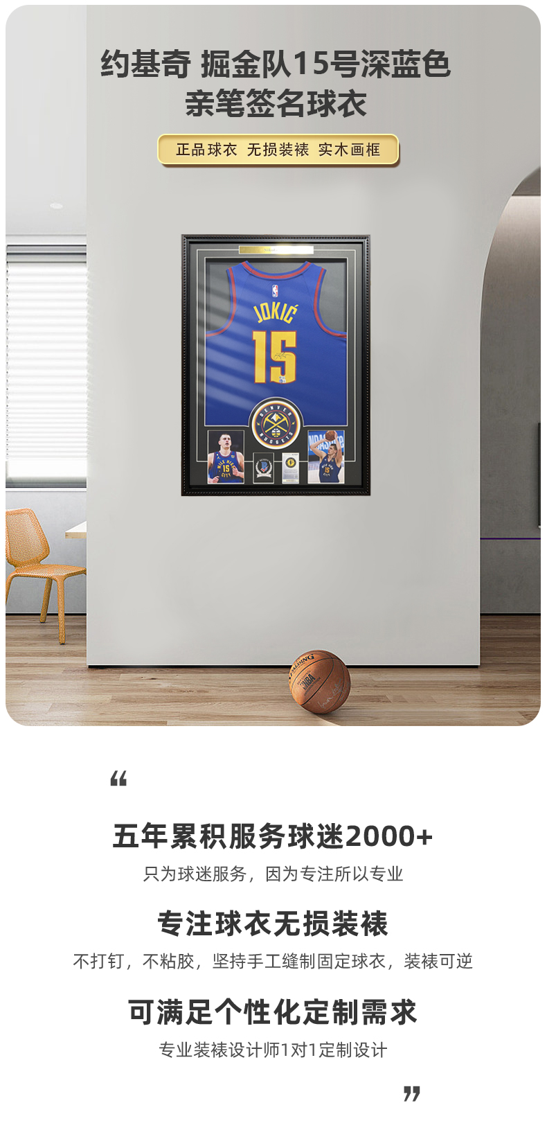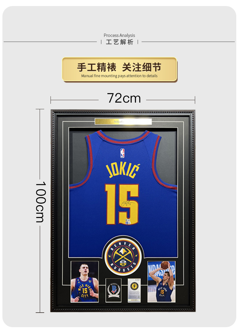 收藏系列 约基奇 掘金队15号深蓝色 亲笔签名球衣