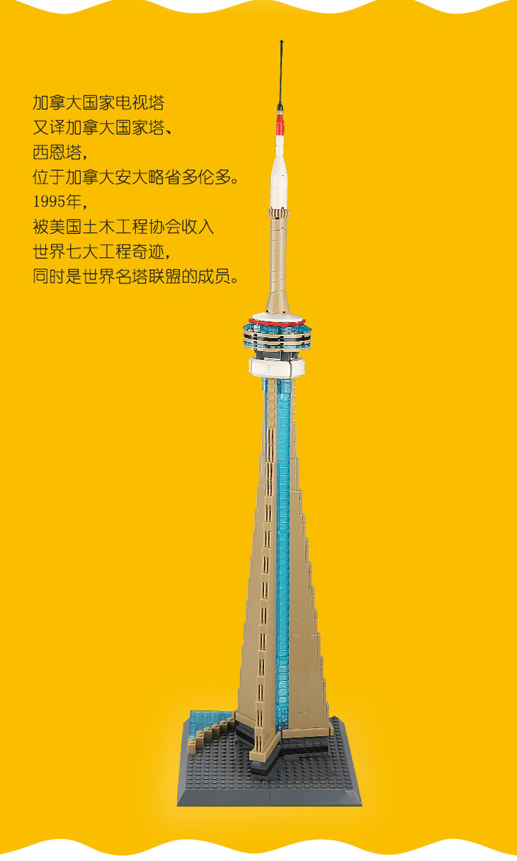 万格加拿大多伦多电视塔4215世界名筑儿童启蒙建构拼插积木