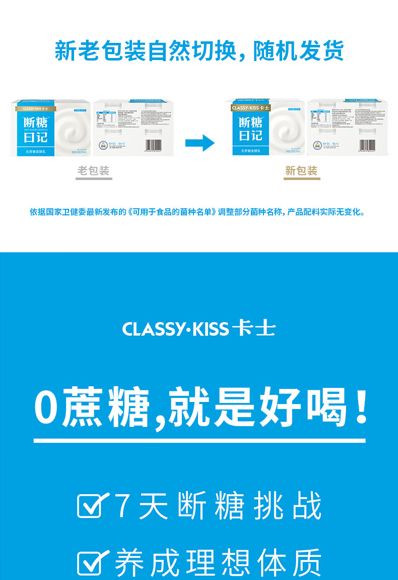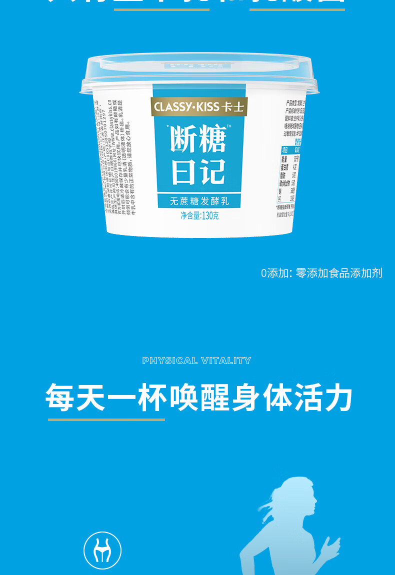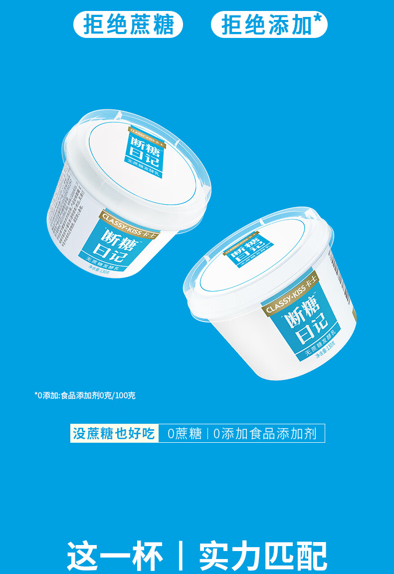 卡士/CLASSY-KISS 断糖日记 无蔗糖 原味酸奶 130g*4杯/组