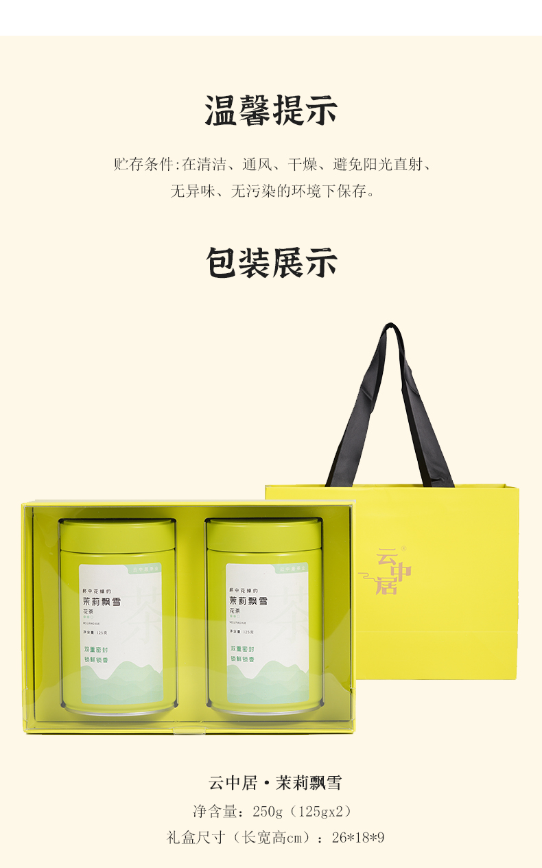 云中居云醉系列特级茉莉飘雪礼盒装250g(125g×2)