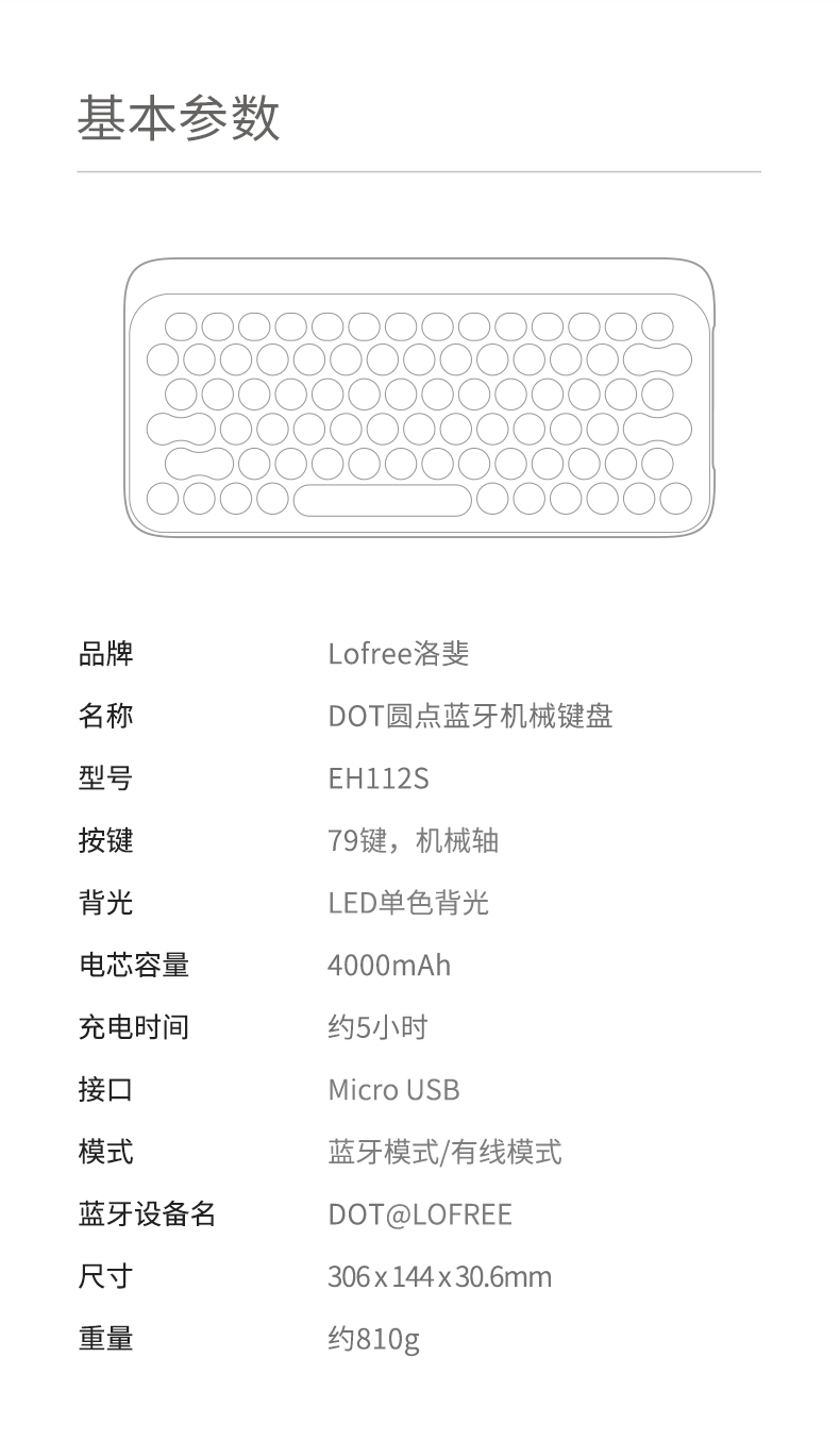 洛斐圆点蓝牙机械键盘-经典蓝EH112S