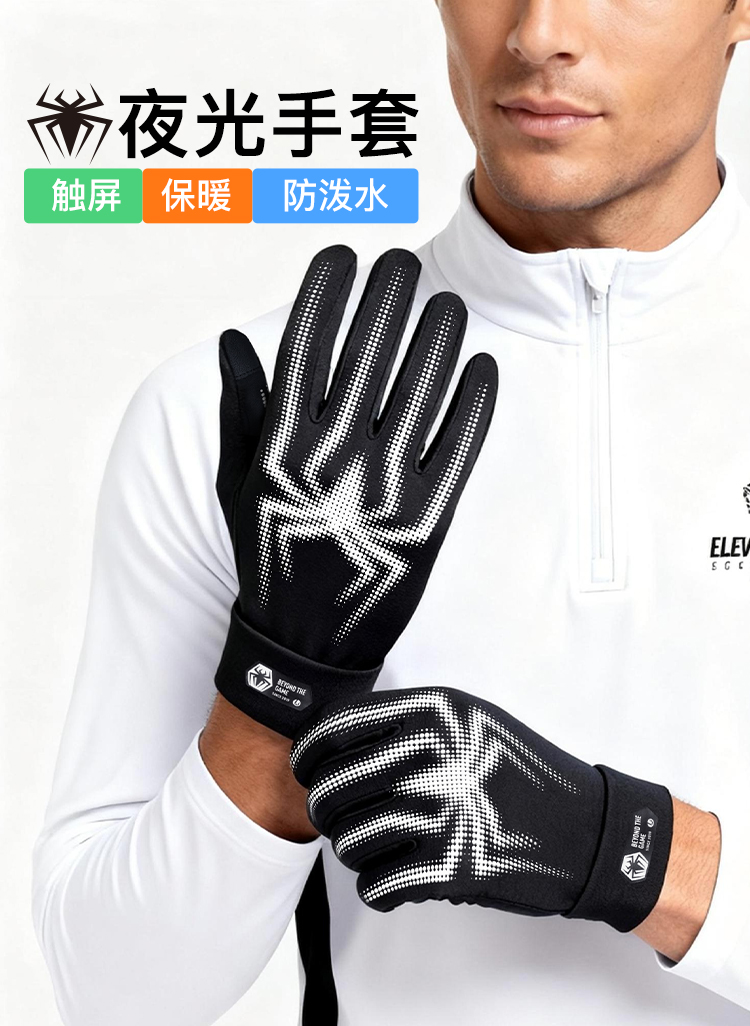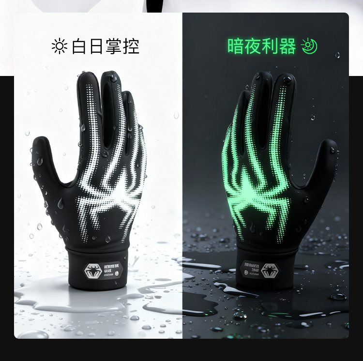 小李子正品李质造足球运动训练夜光印花保暖防风防水手套成人男