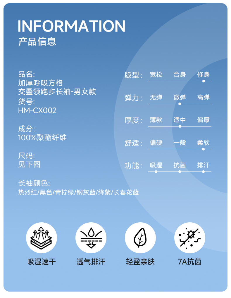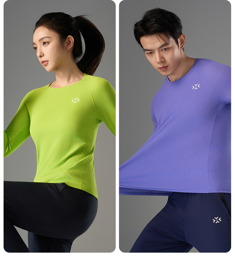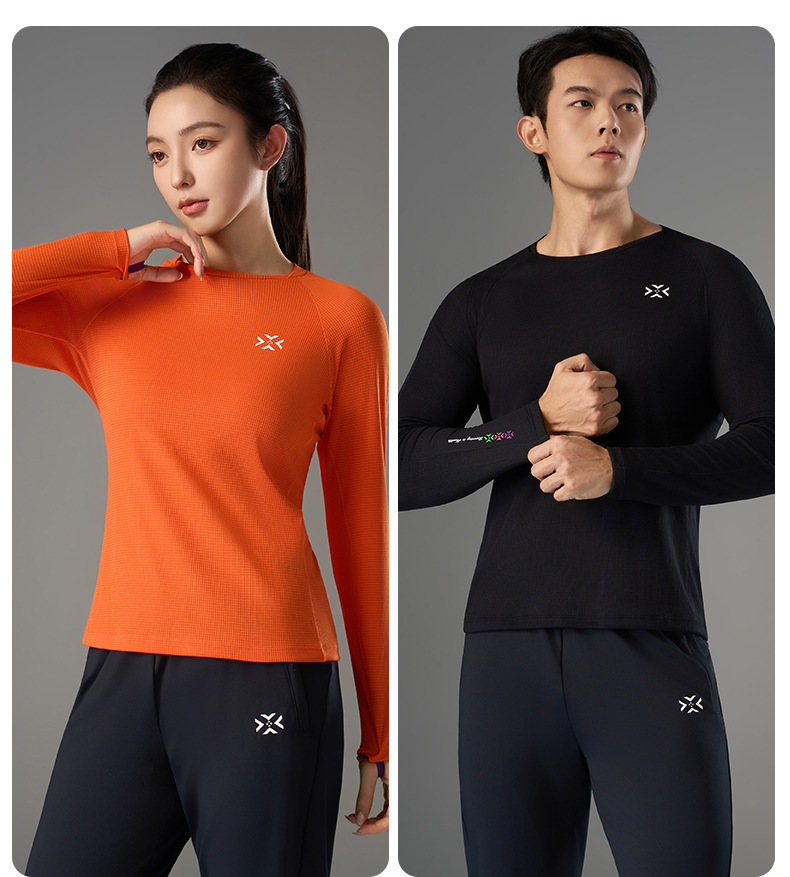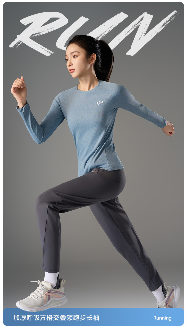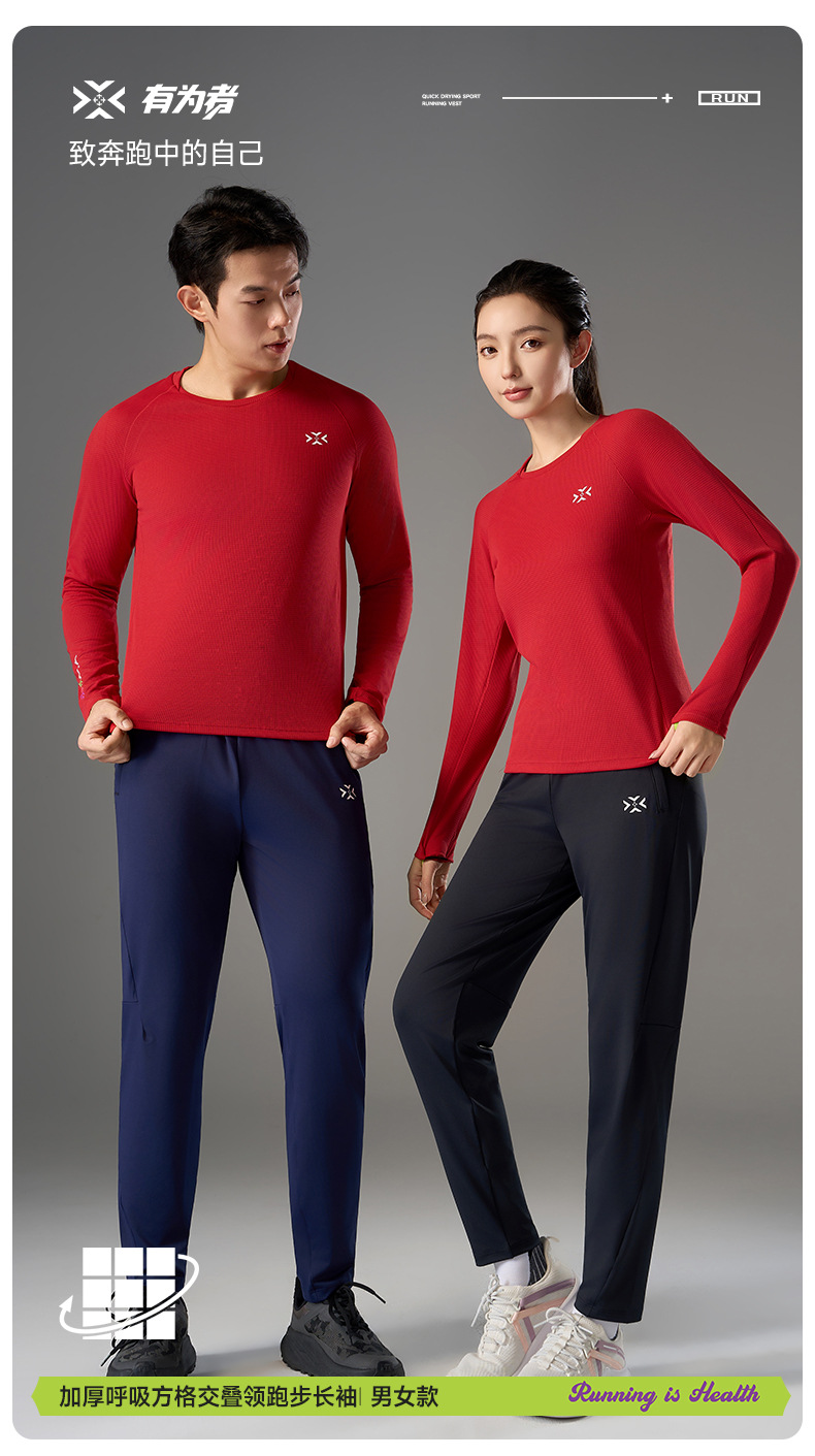 跑步长袖加厚呼吸方格圆领运动