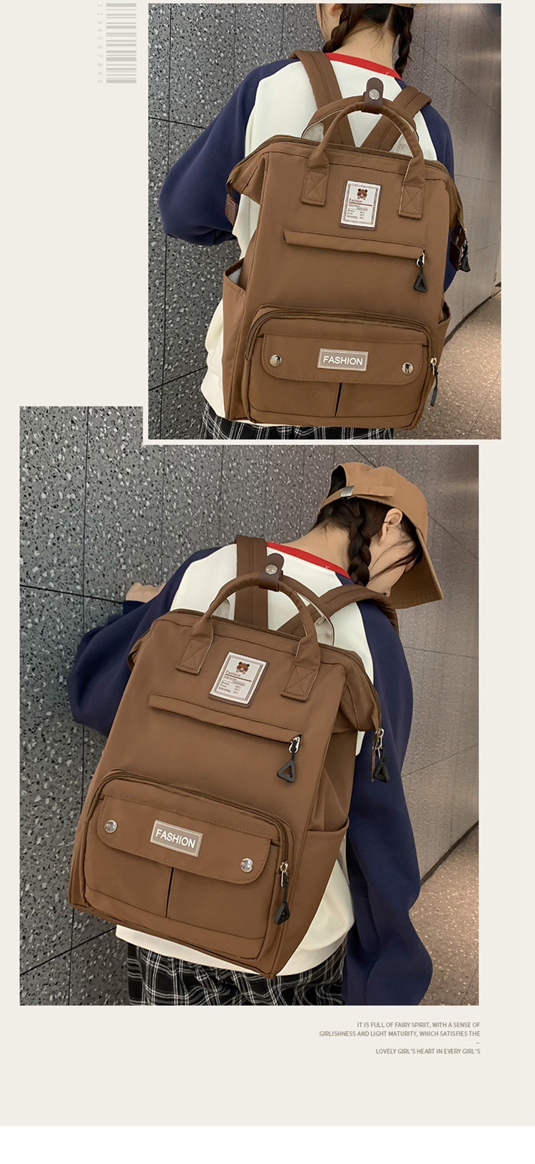 日系ins风书包女初中学生高颜值少女背包简约出游韩版手提双肩包