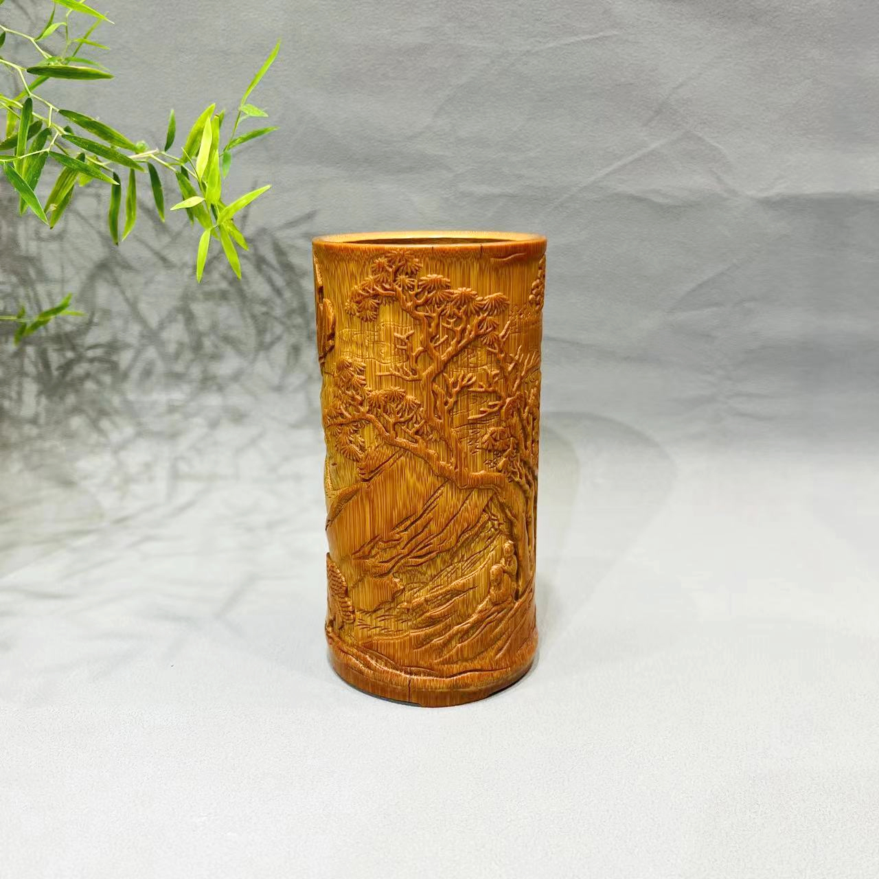 山行诗意°竹雕笔筒