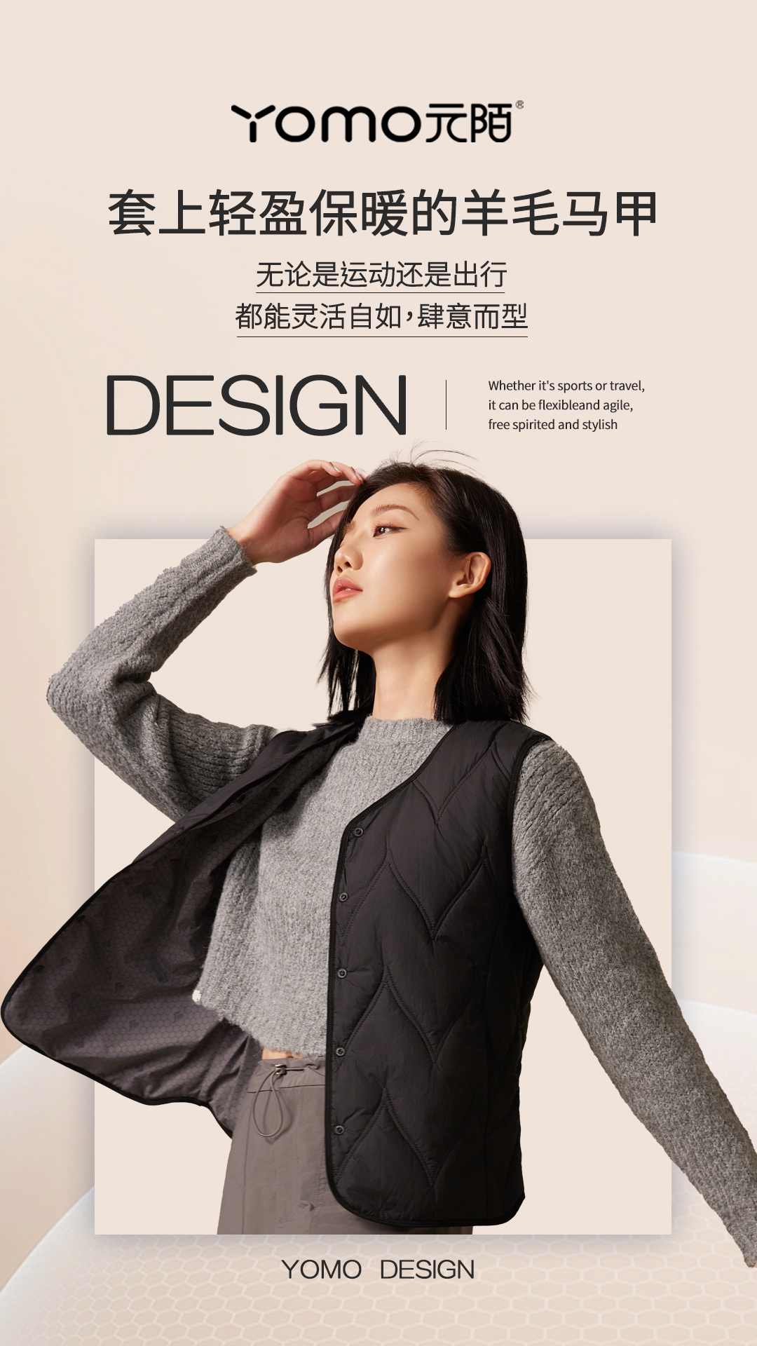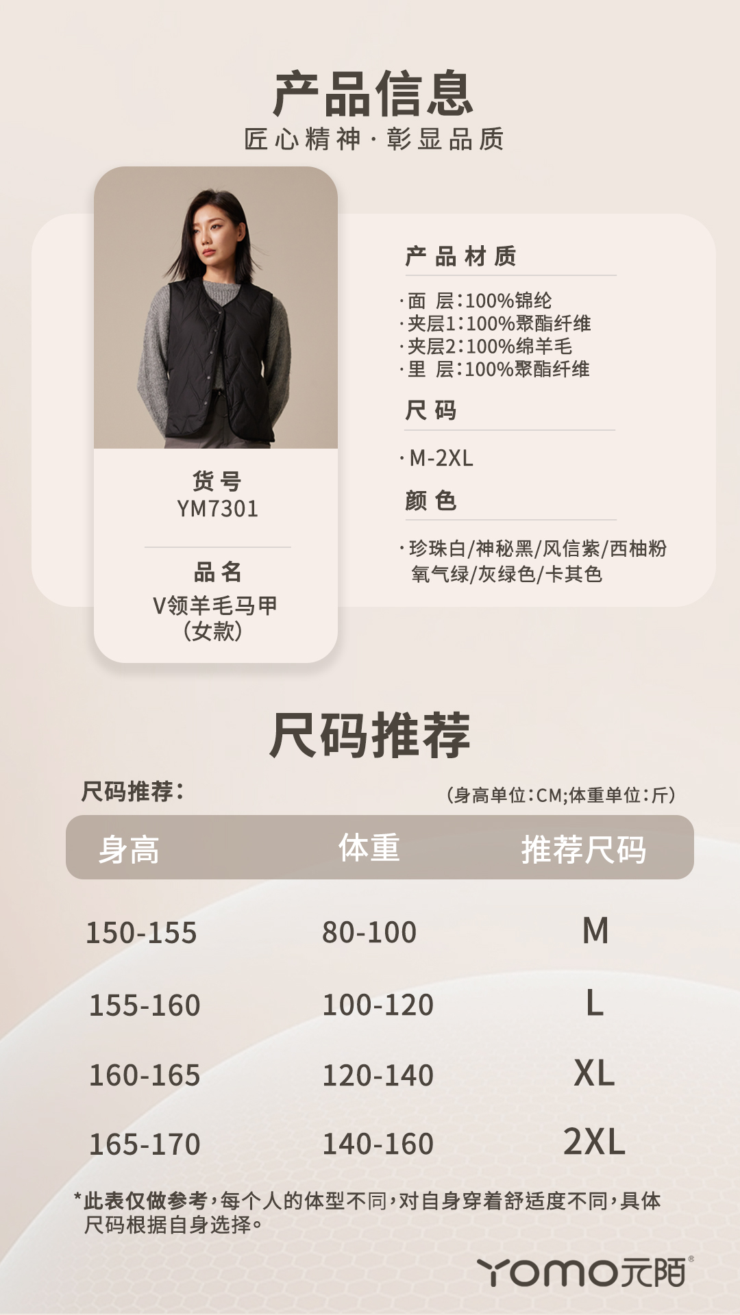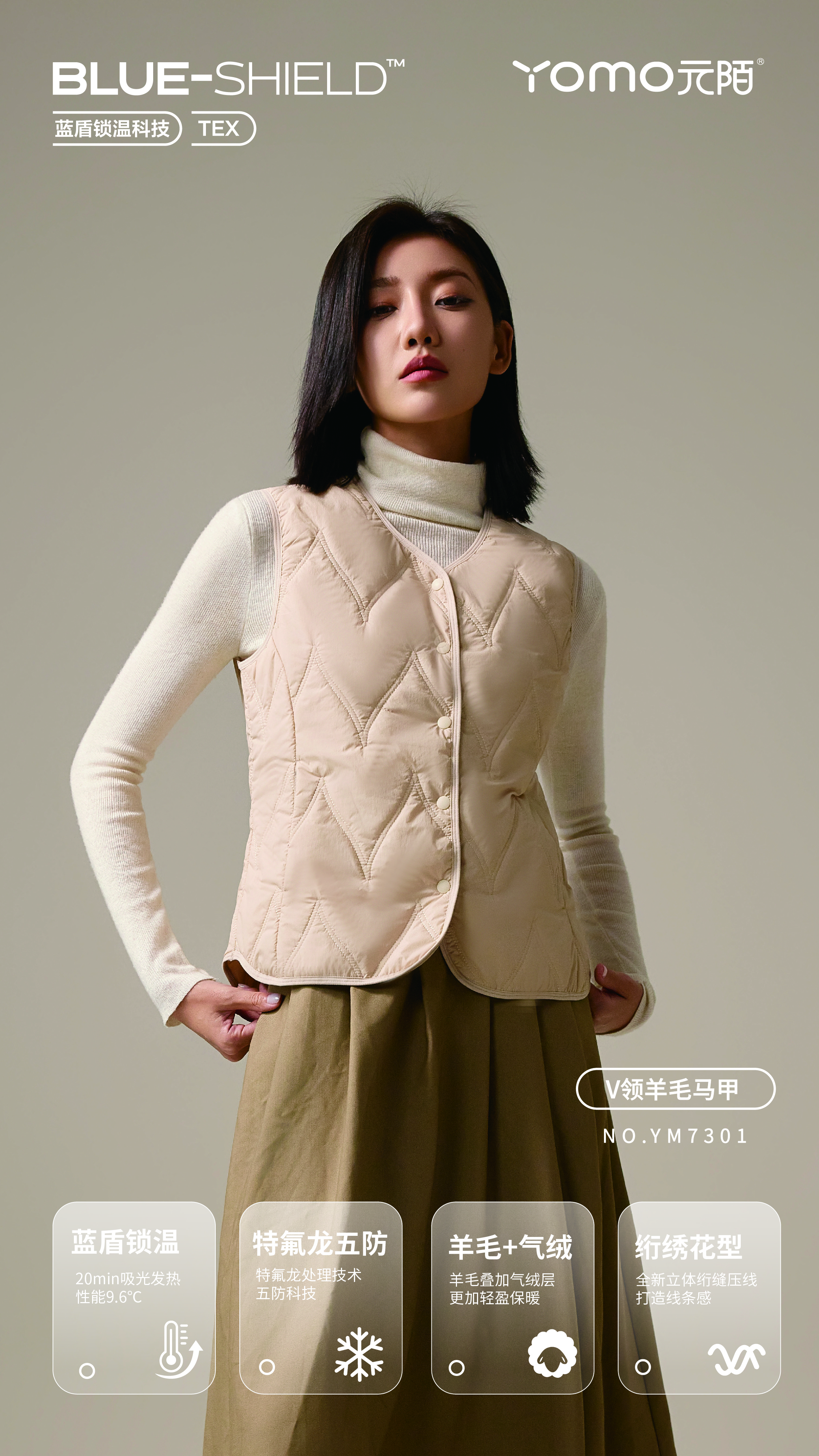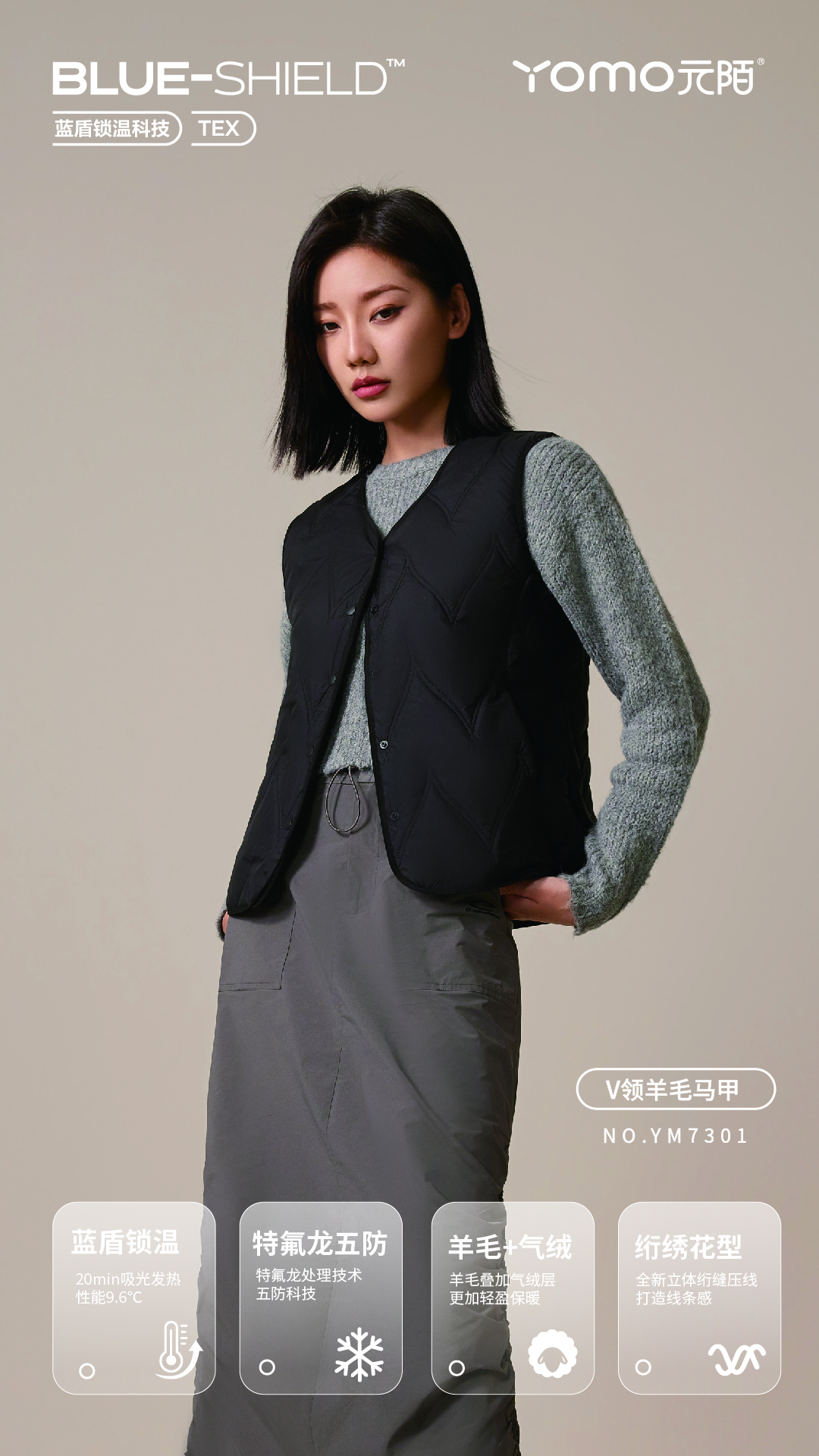 女士冬季V领羊毛马甲保暖背心马甲蓝盾锁温【F7301】