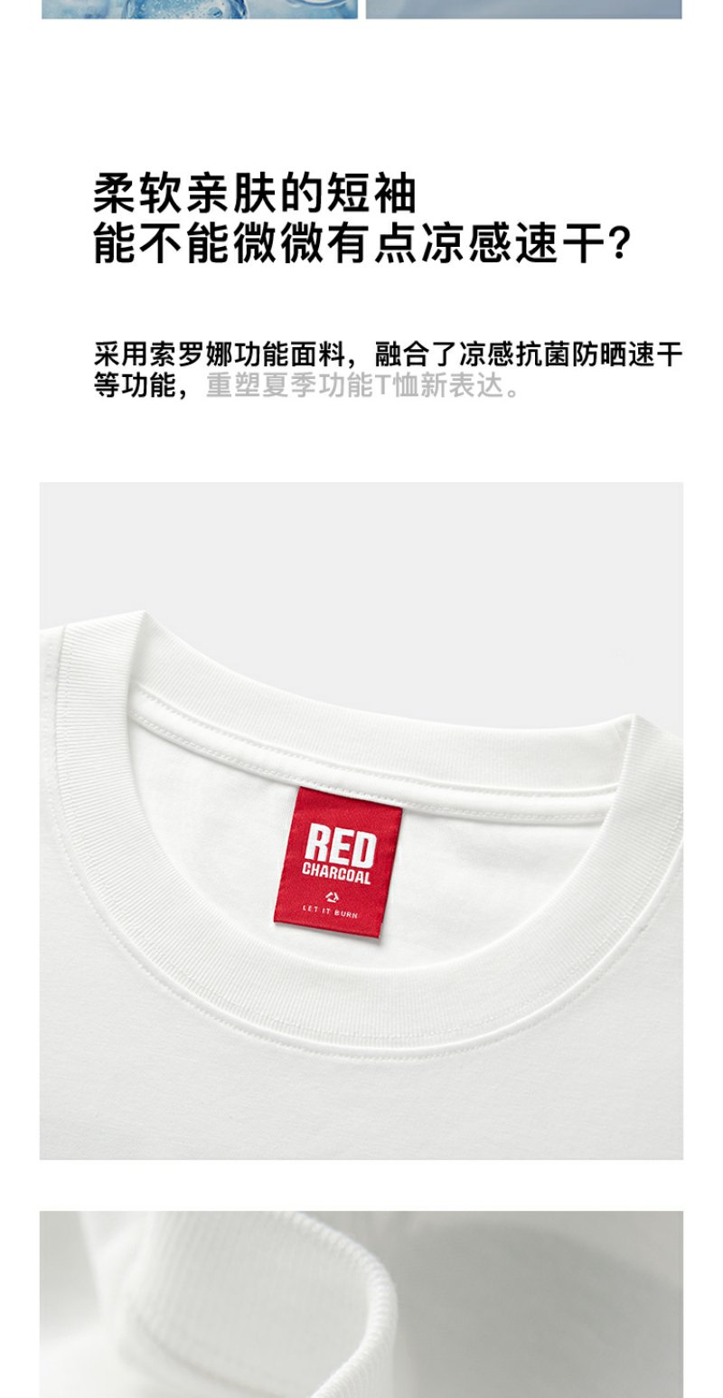 REDCHARCOAL 红炭凉感渐变印花短袖T恤男潮牌夏宽松防晒速干半袖