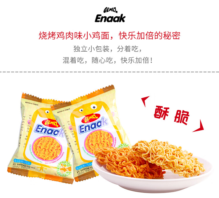GEMEZ印尼进口小鸡干脆面 方便面 干吃面休闲零食 烧烤鸡肉味 10包入 100070673229