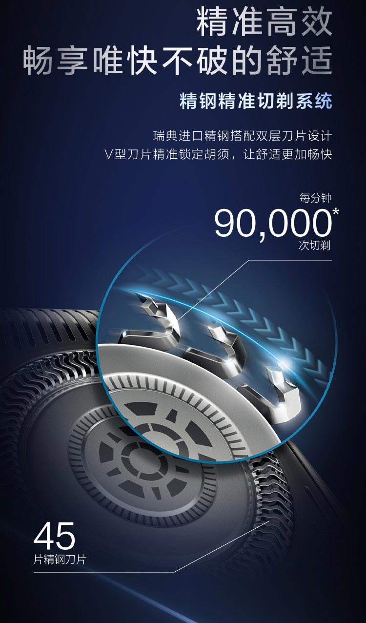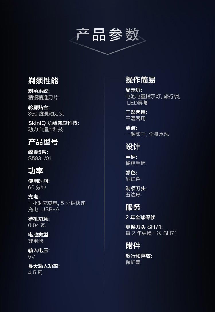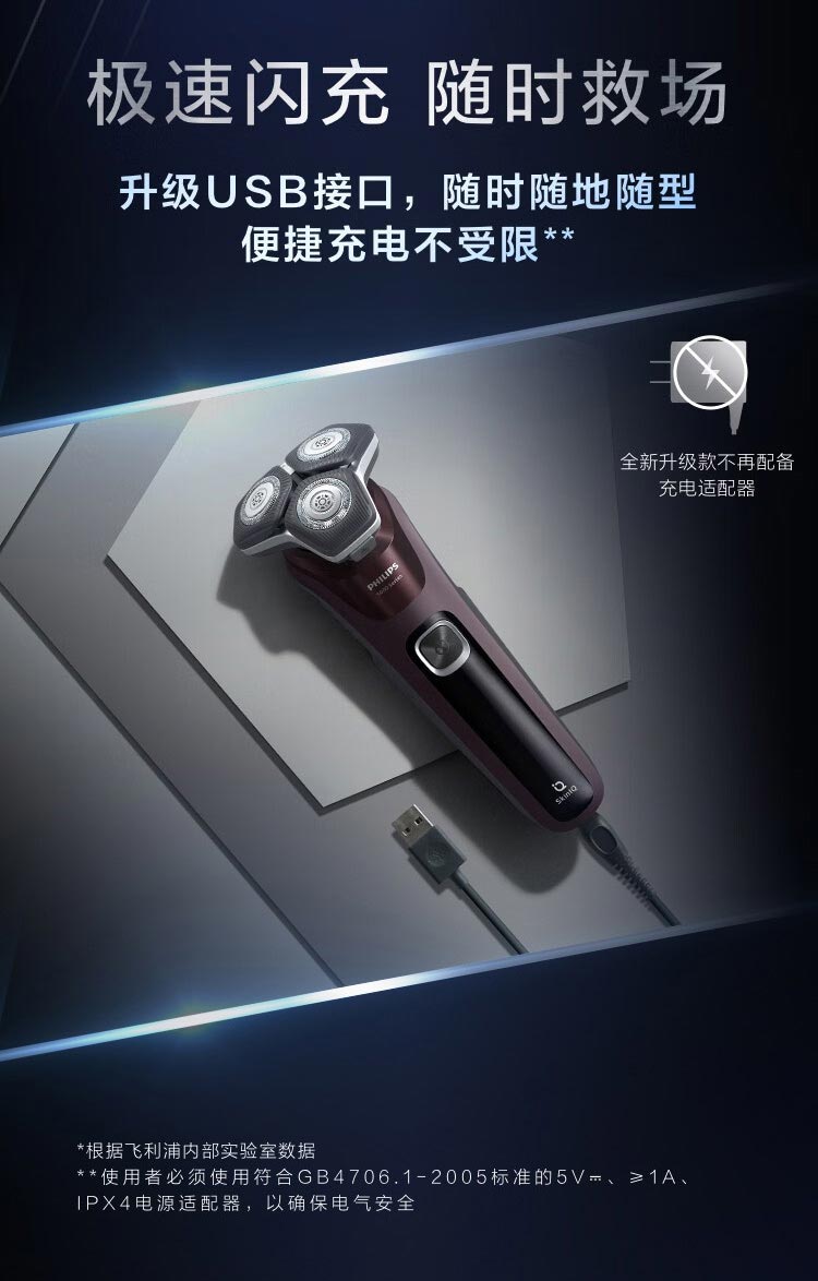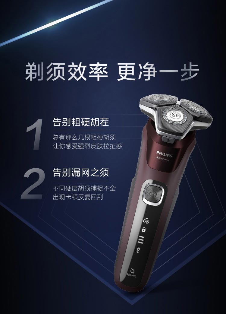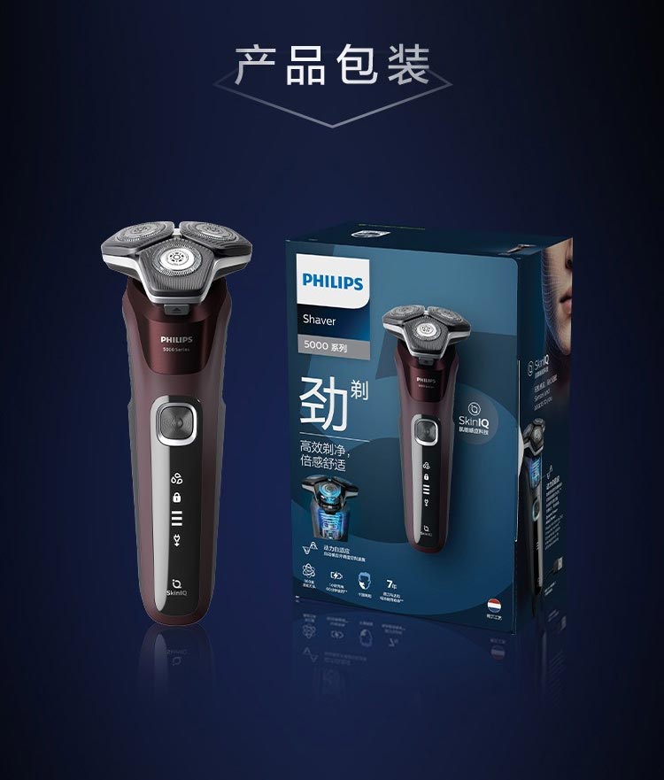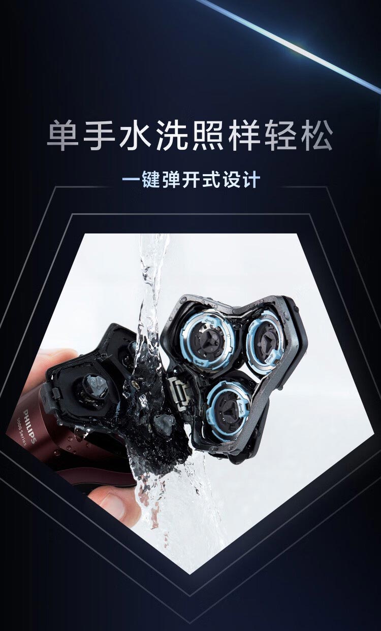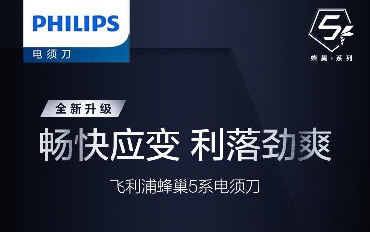 飞利浦PHILIPS剃须刀电动高端刮胡刀 全身水洗1小时快充旅行便携 黑蜂巢5系S5831/
