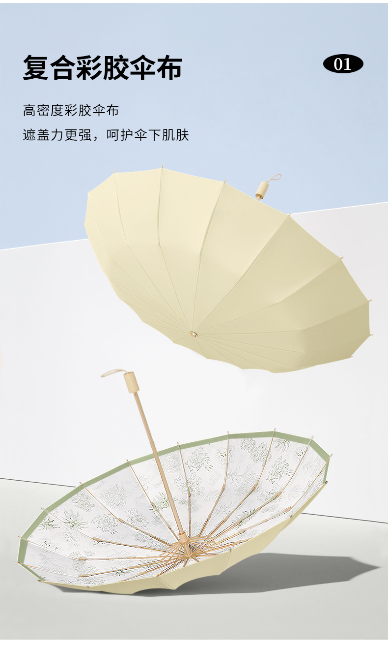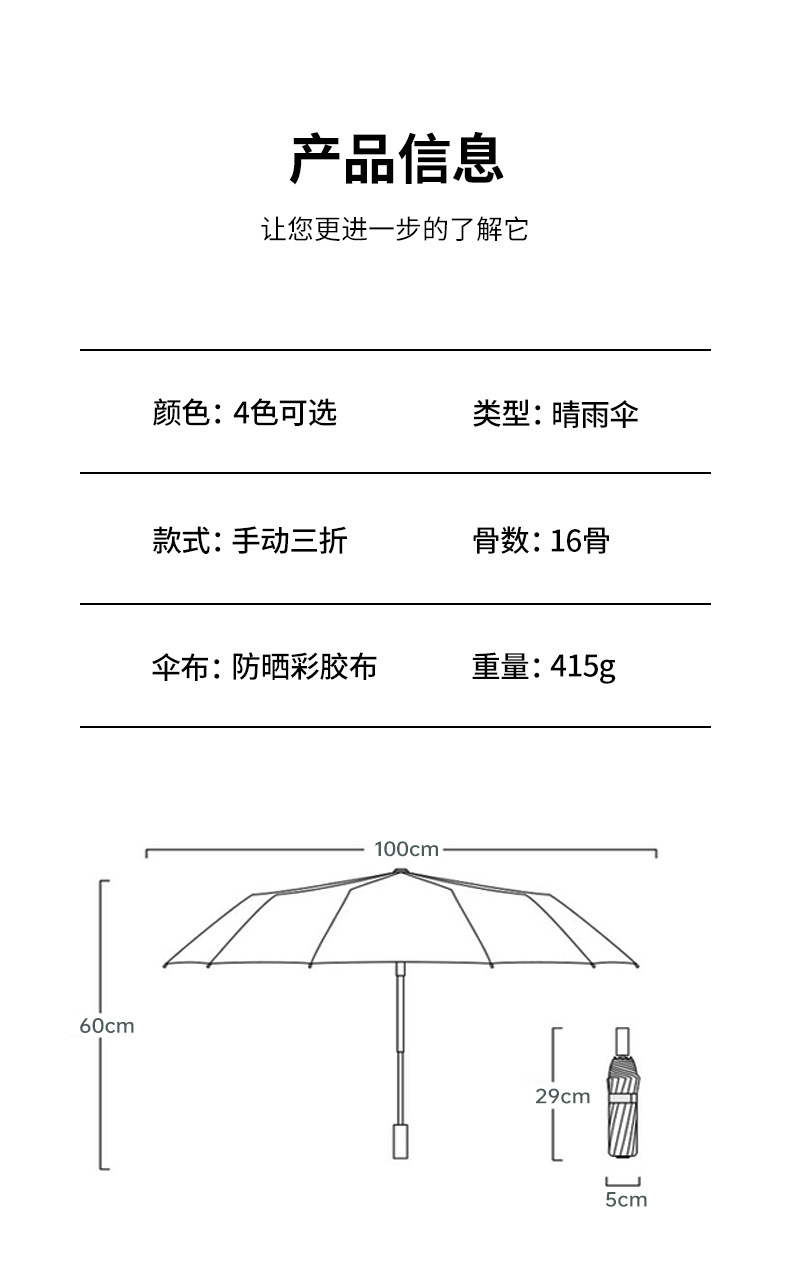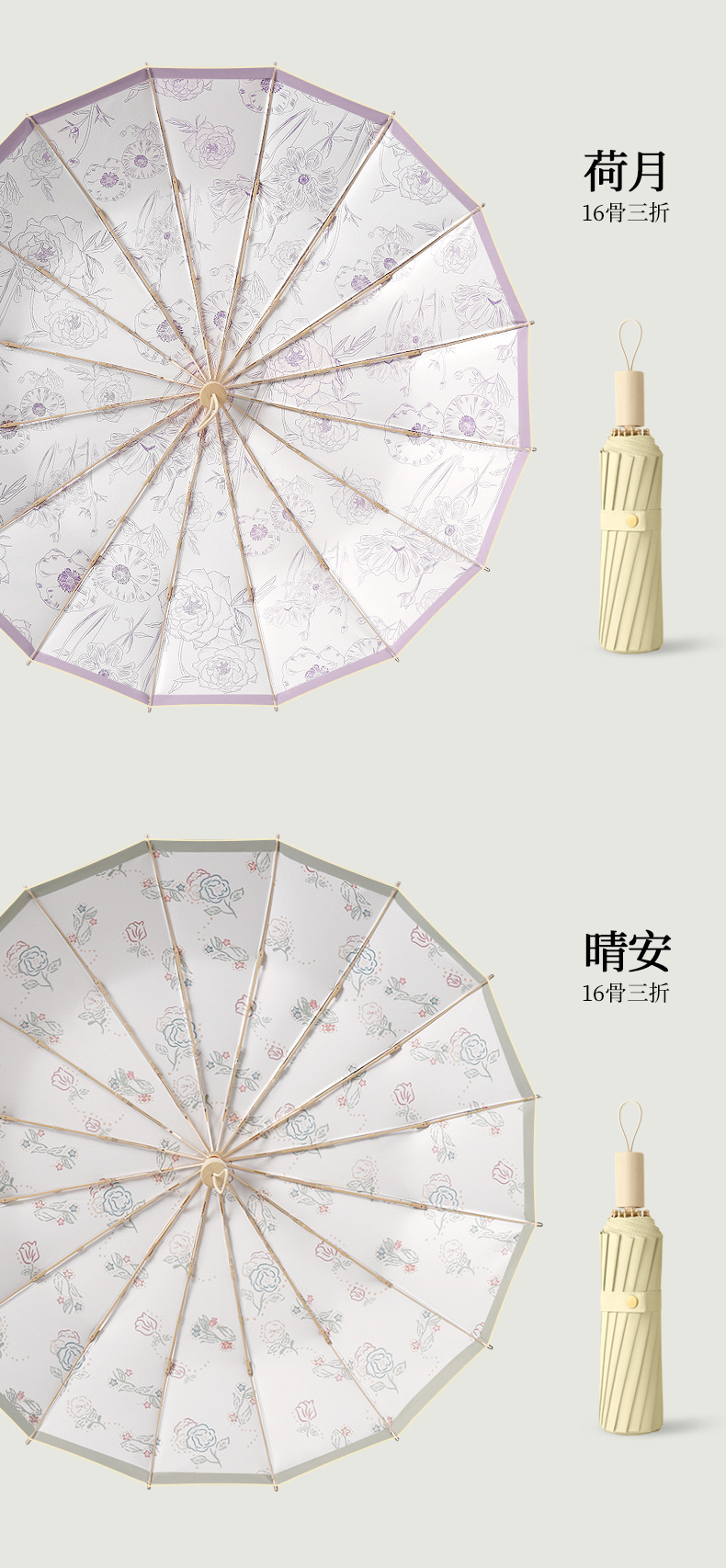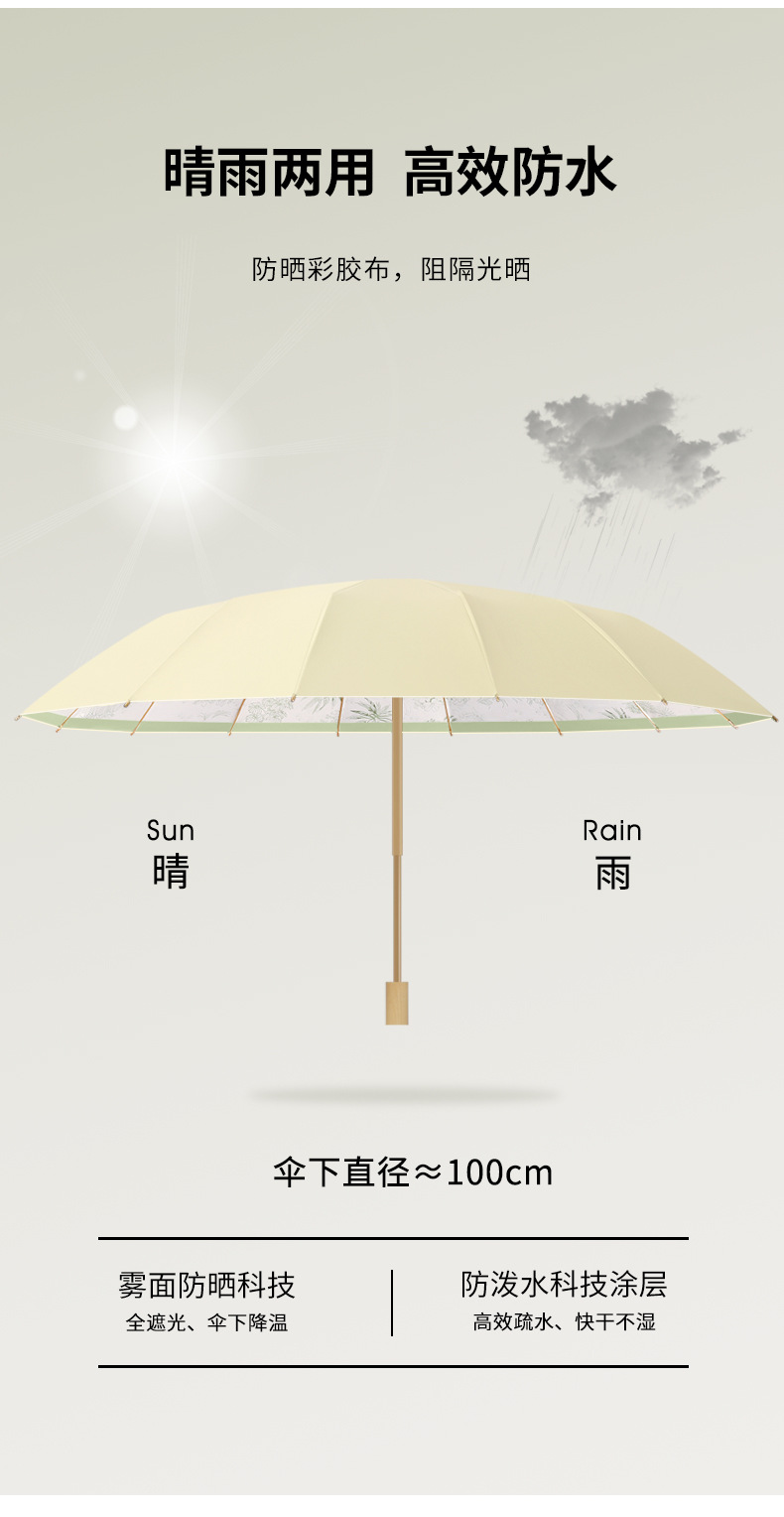 三折内翻纤维氧化铝合金架伞 晴雨两用伞