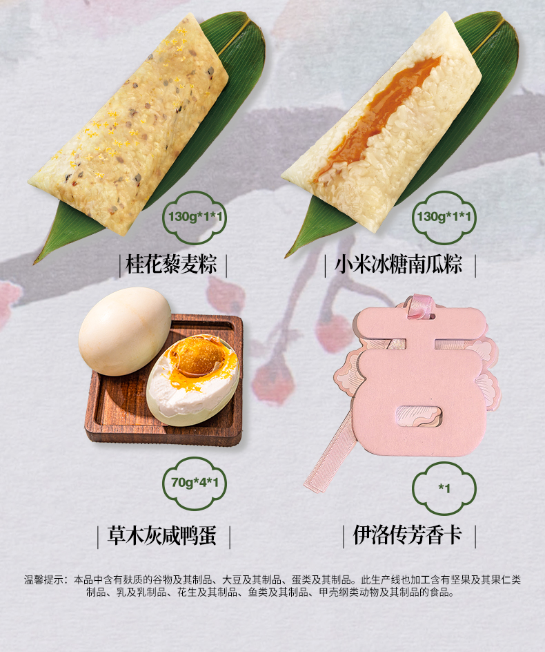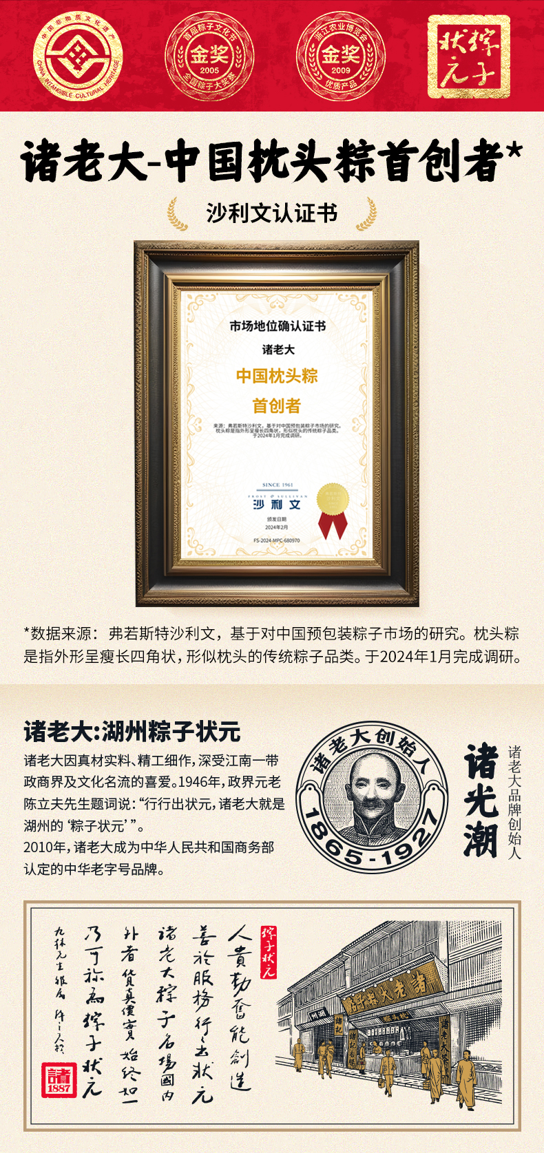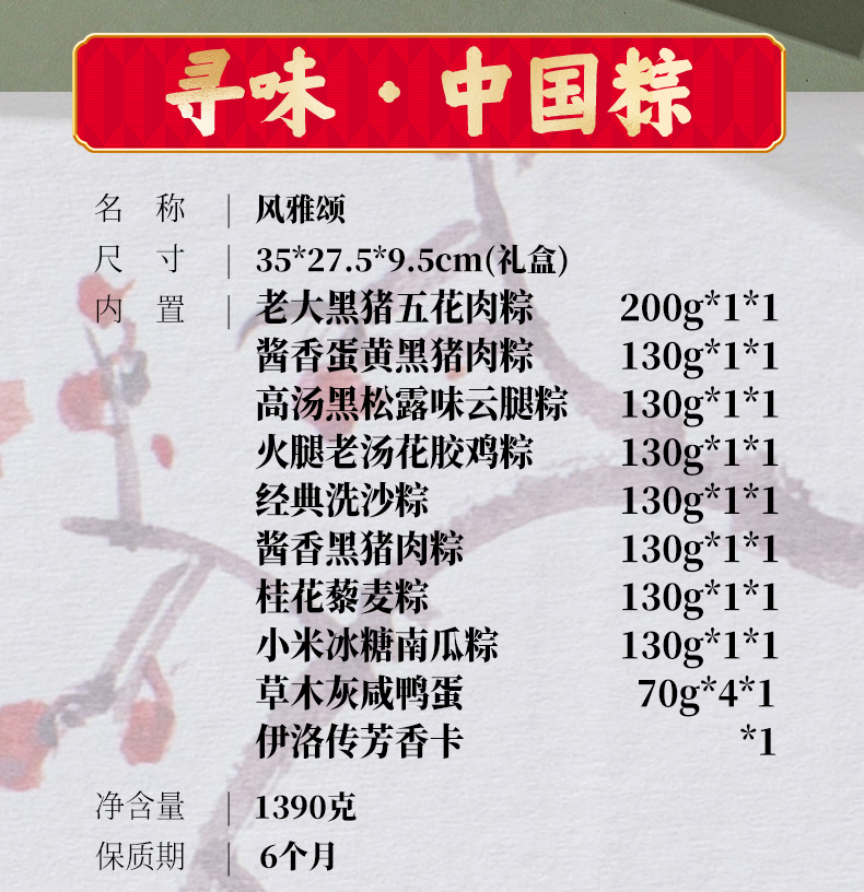 诸老大 风雅颂枕头粽礼盒(8粽4蛋) - 1390g【端午】SKT