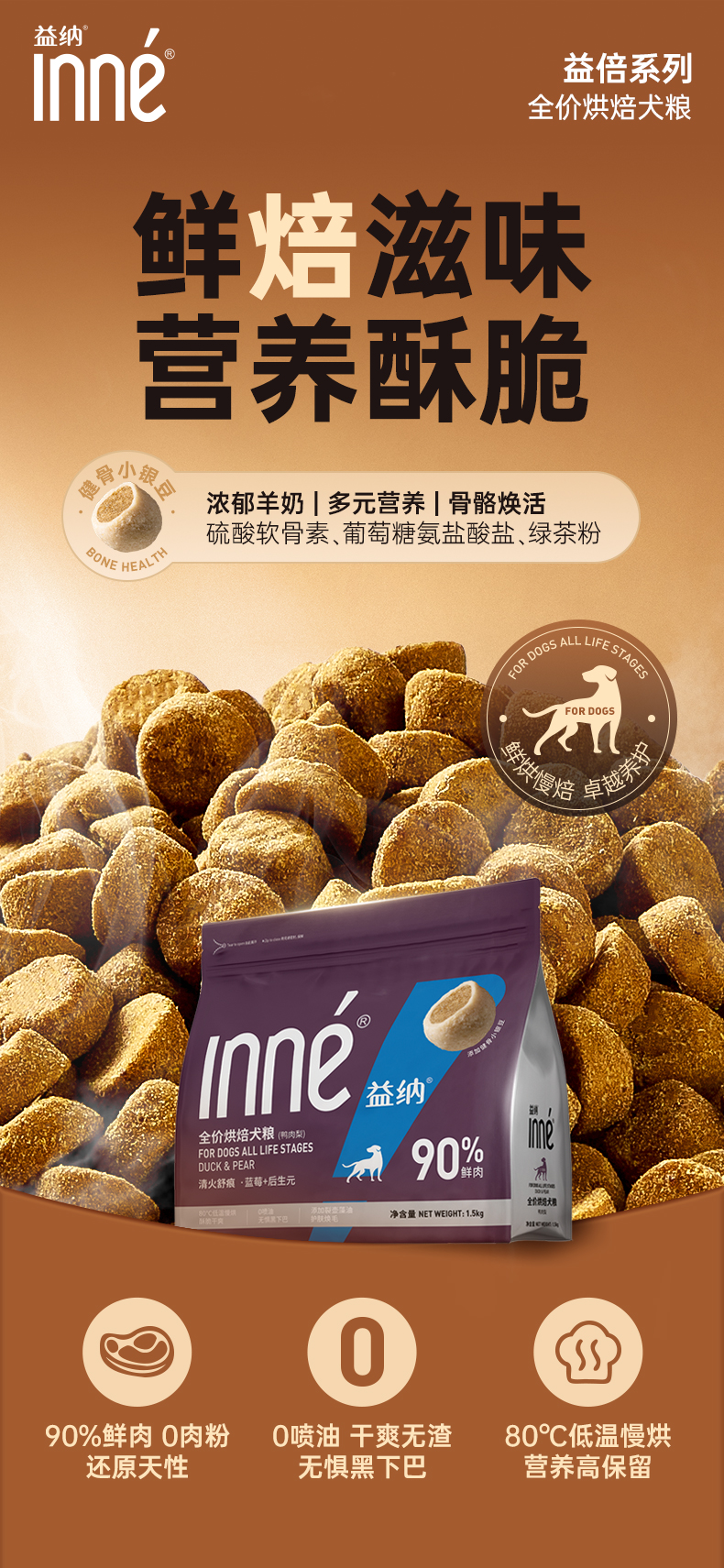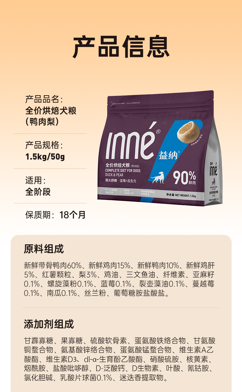 INNE益纳益倍系列全价烘焙犬粮鸭肉梨1.5kg/包