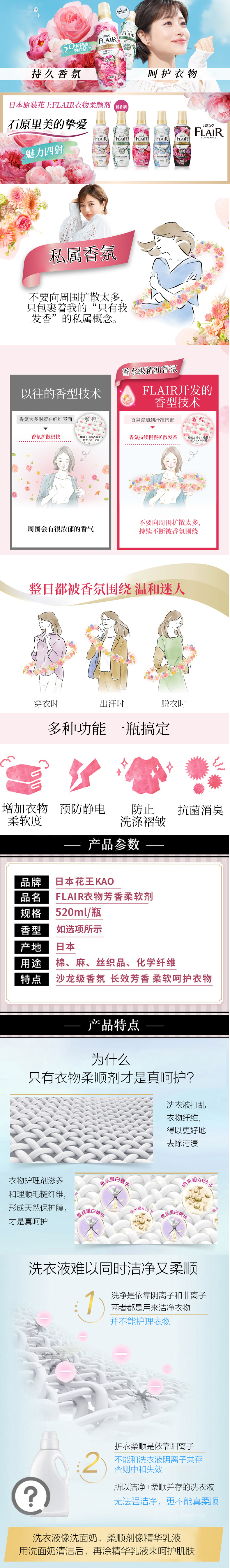 花王 衣物柔顺剂520ml