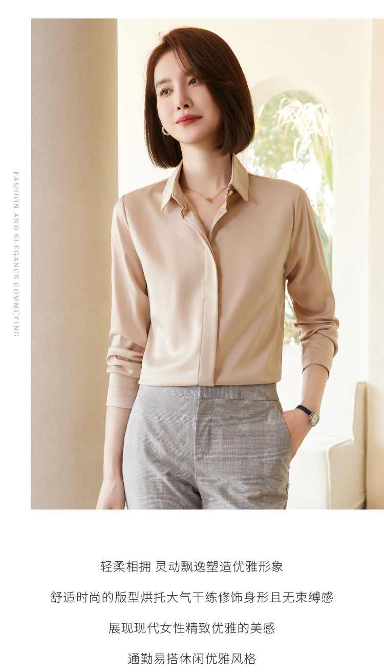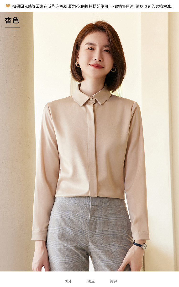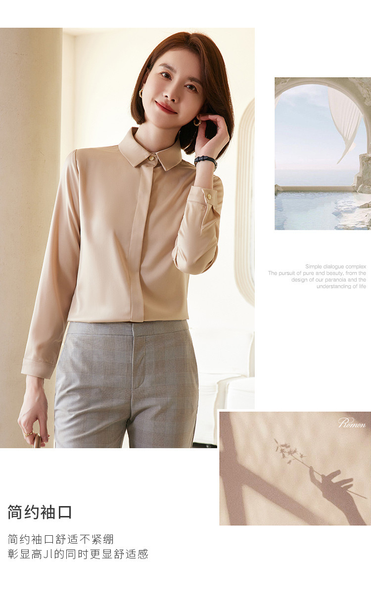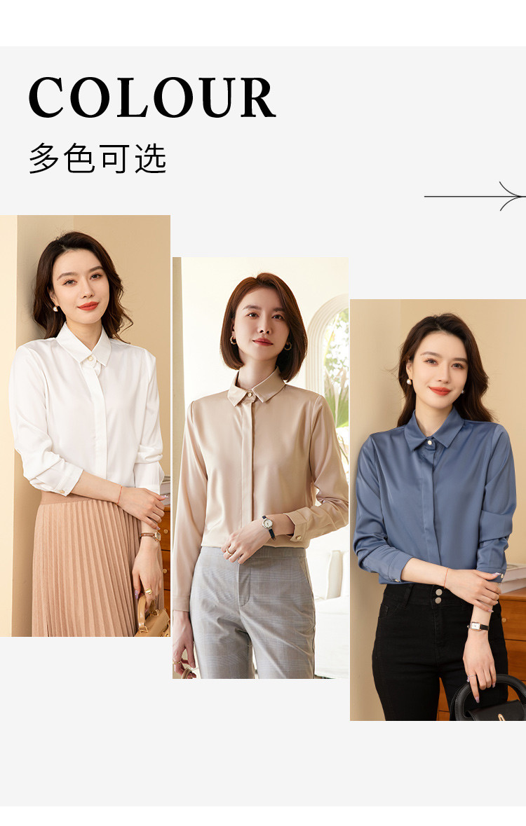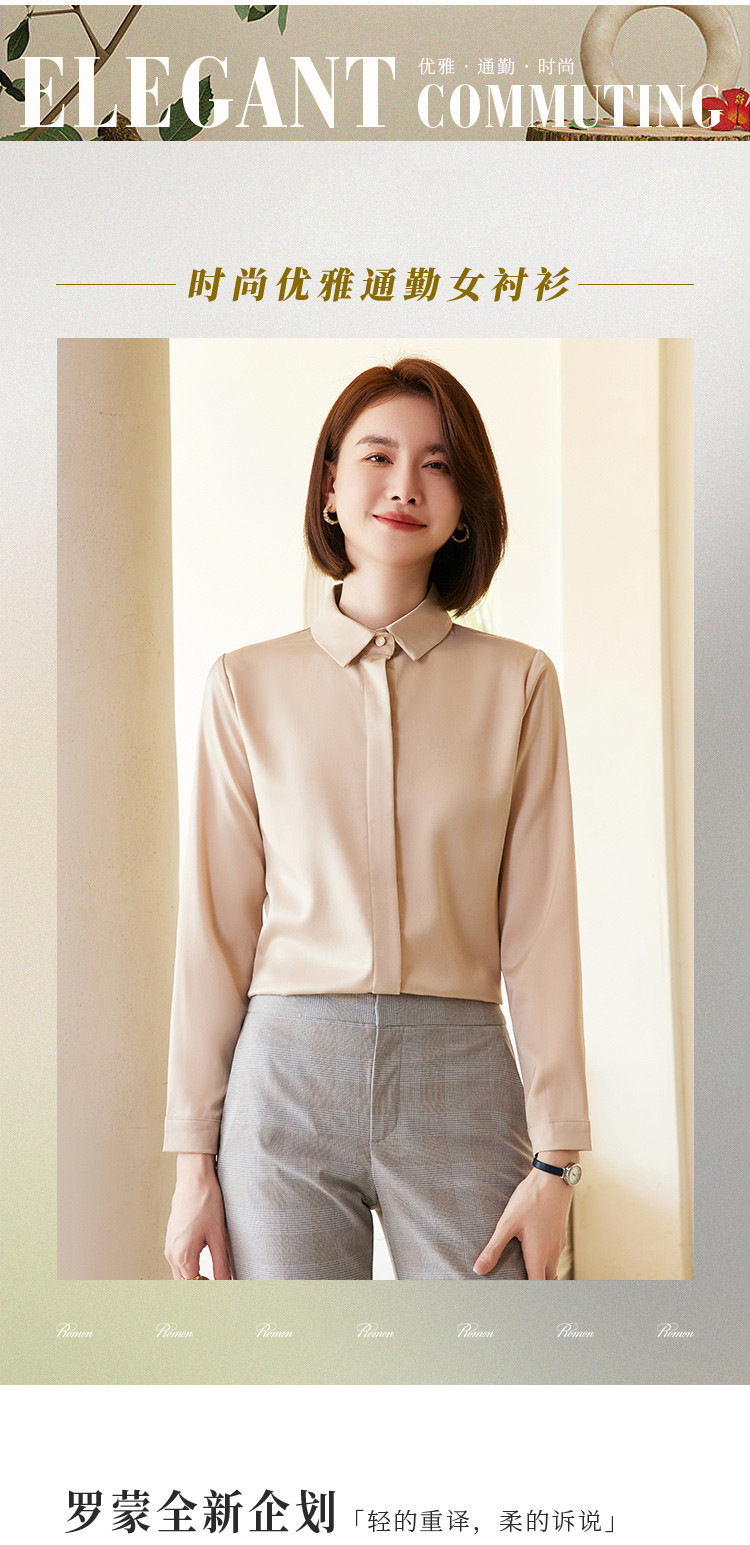 【新品尝鲜】罗蒙春夏女士长袖衬衫纯色简约通勤百搭舒适缎面衬衣