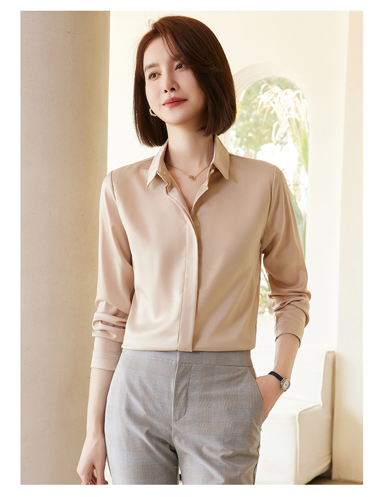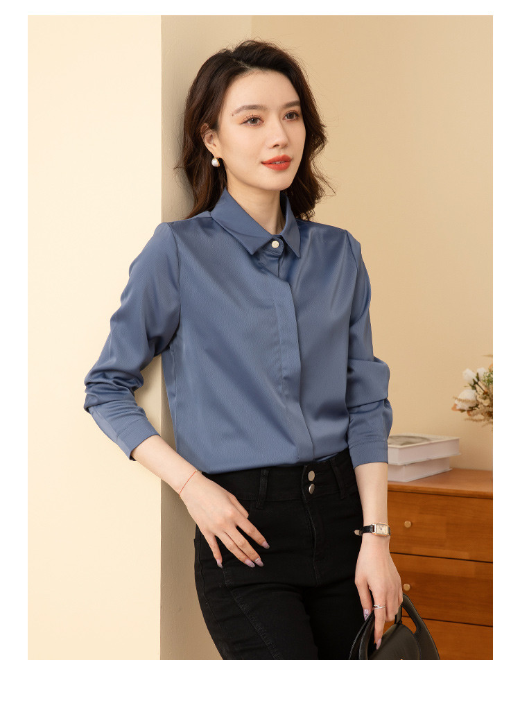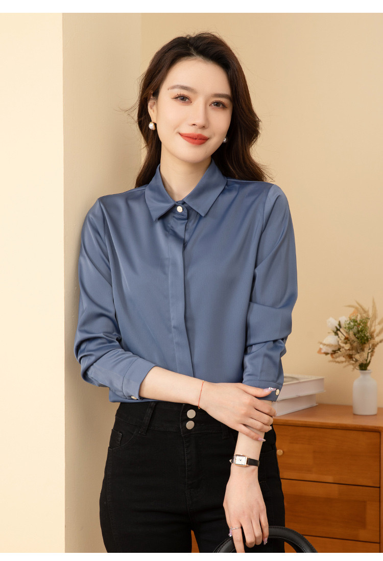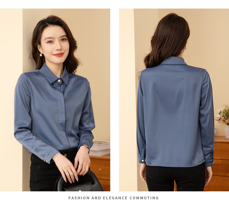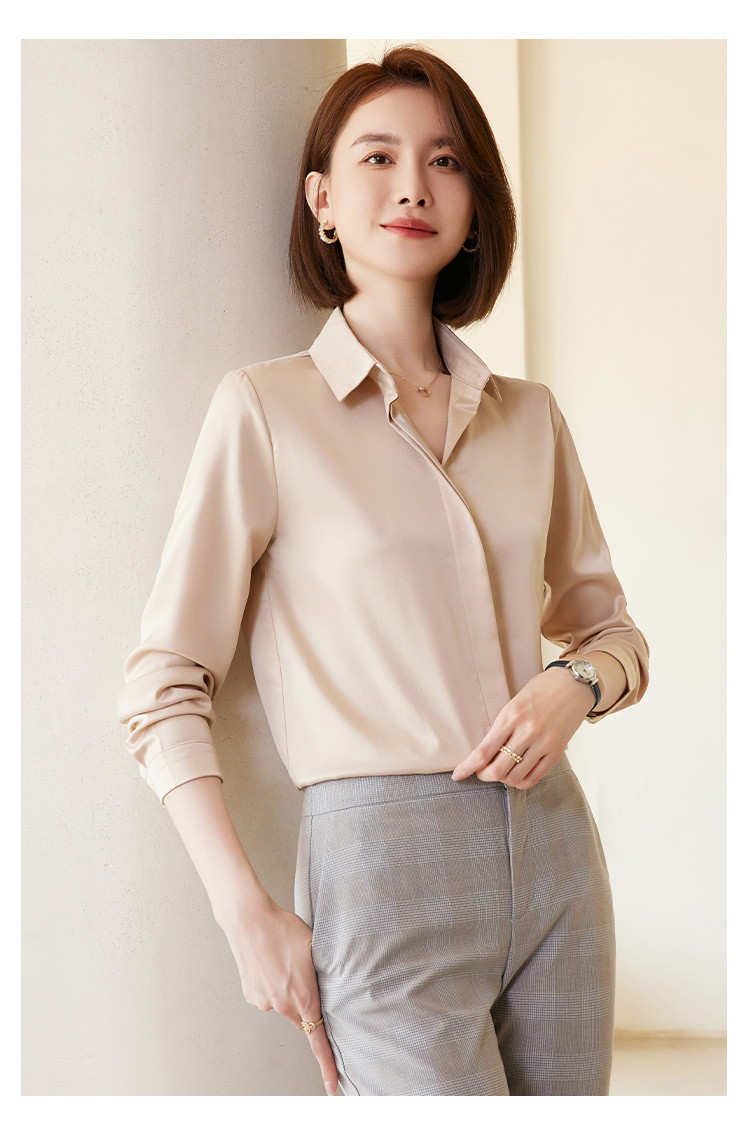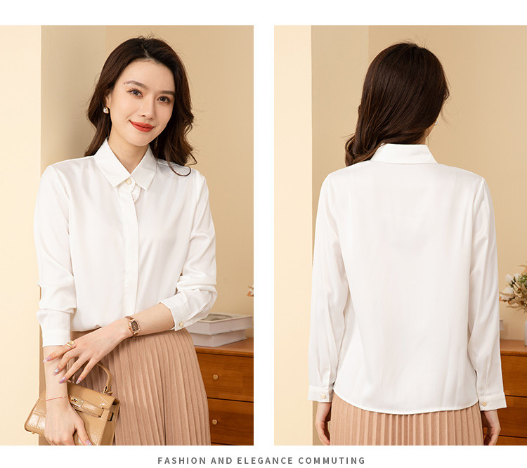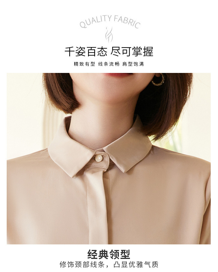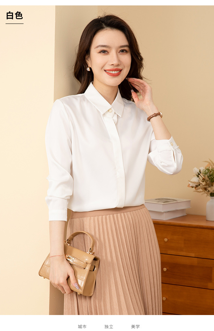【新品尝鲜】罗蒙春夏女士长袖衬衫纯色简约通勤百搭舒适缎面衬衣