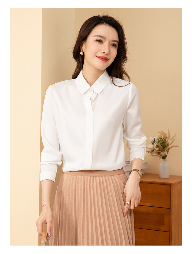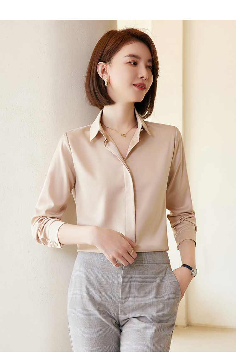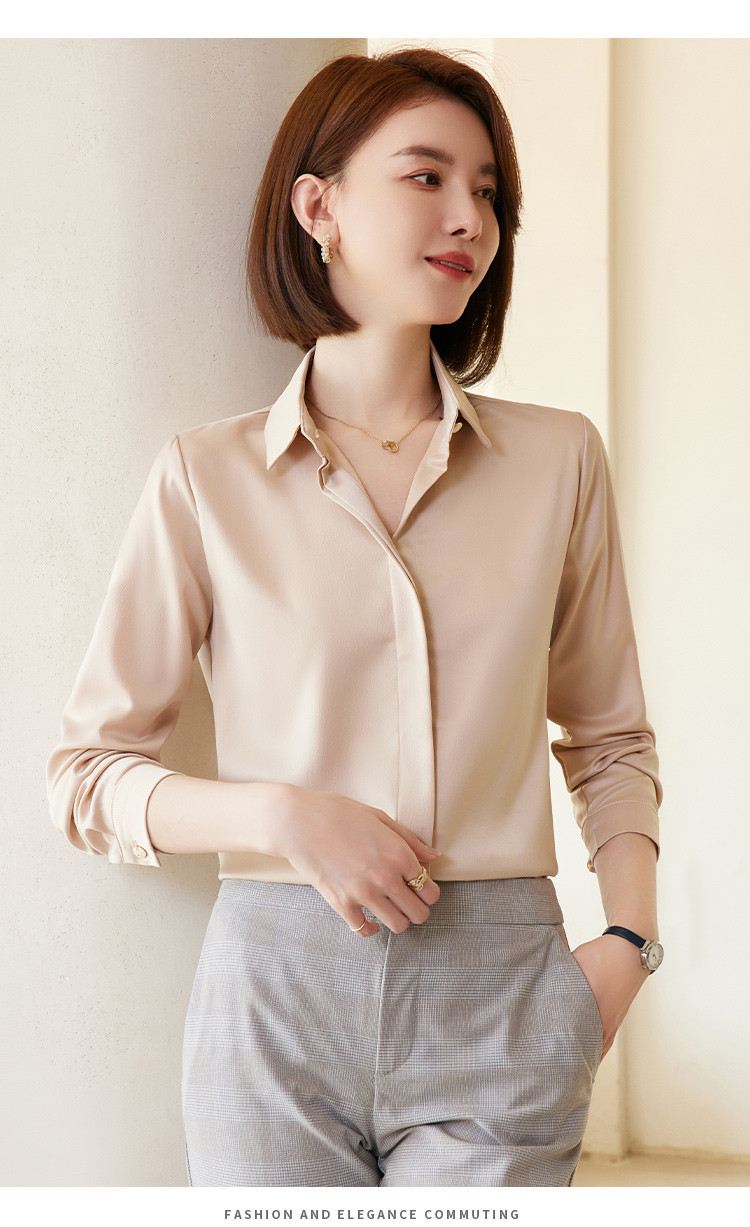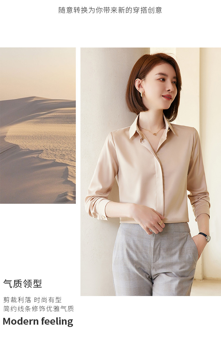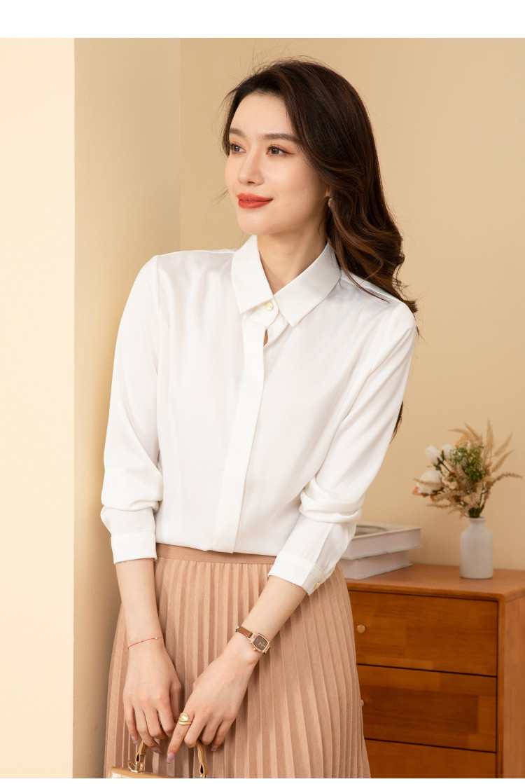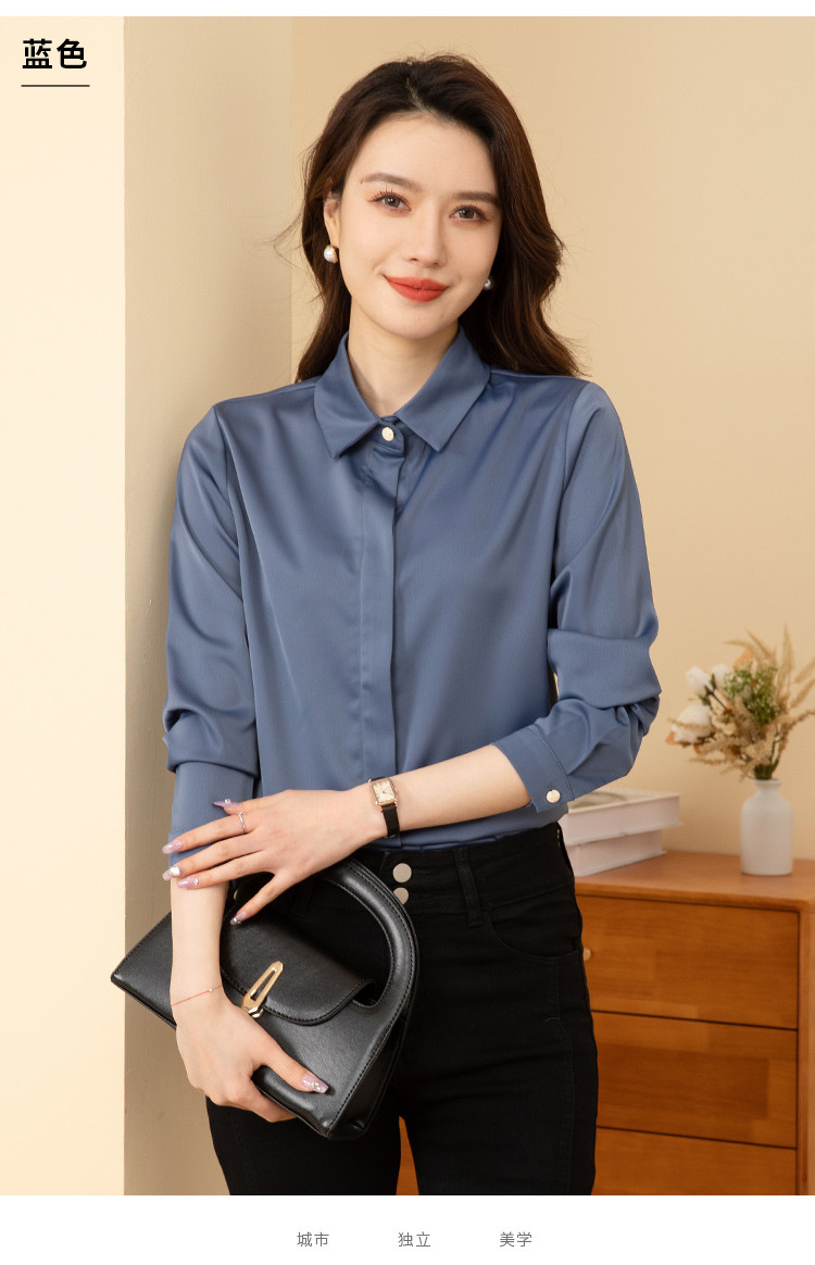 【新品尝鲜】罗蒙春夏女士长袖衬衫纯色简约通勤百搭舒适缎面衬衣