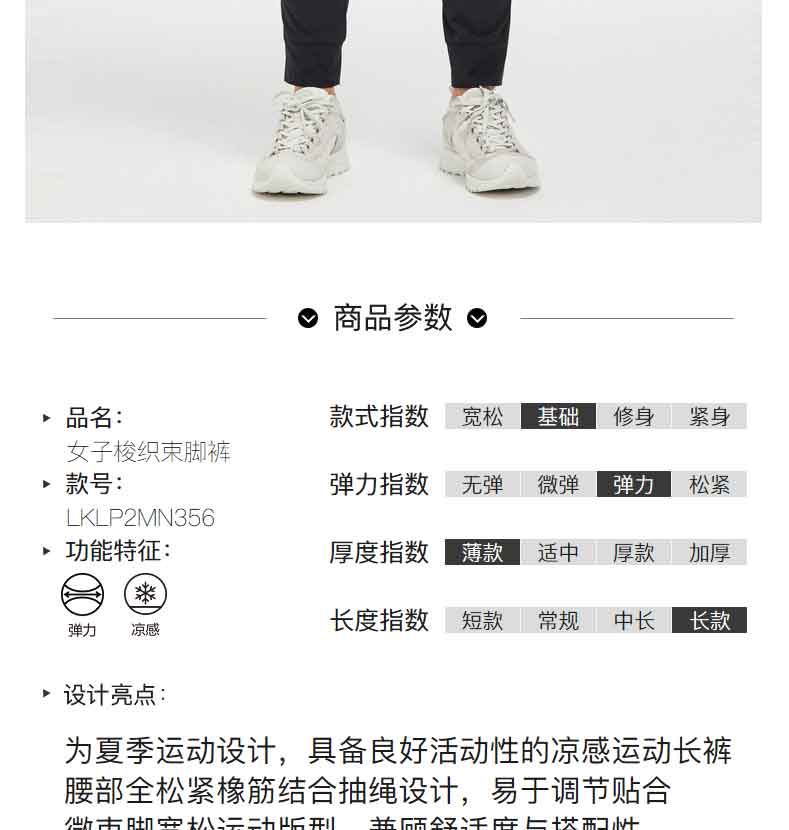 KOLONSPORT可隆束脚裤女款凉感运动裤弹力户外休闲裤徒步露营裤子LKLP2MN356
