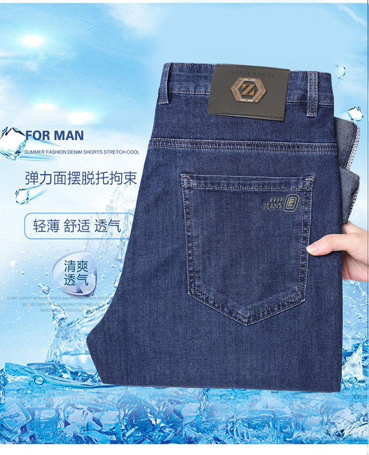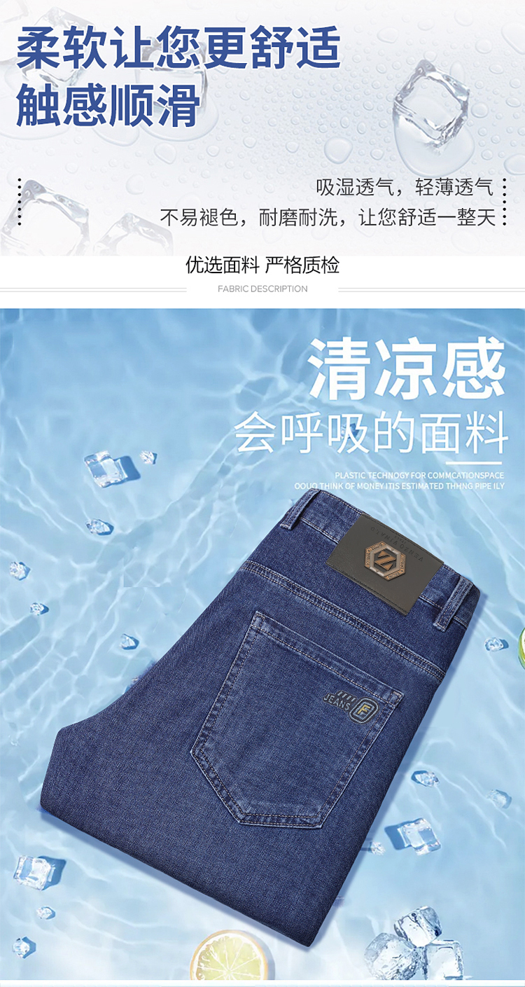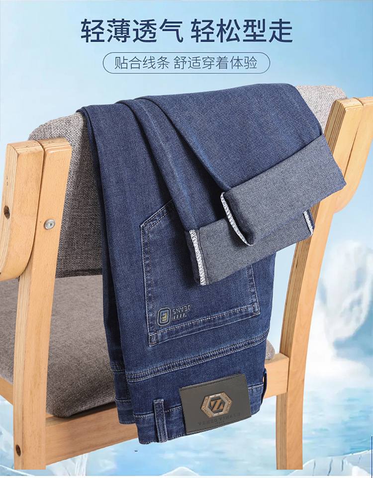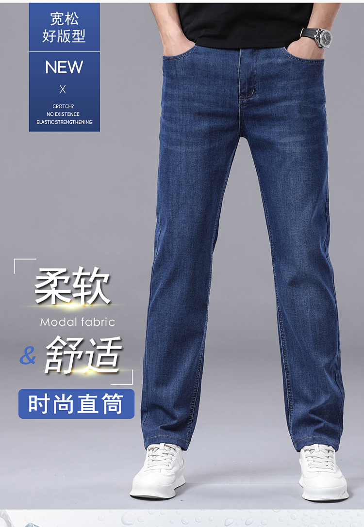 半身缘男裤 夏季舒适薄款宽松弹力商务直筒牛仔裤252101B10103763