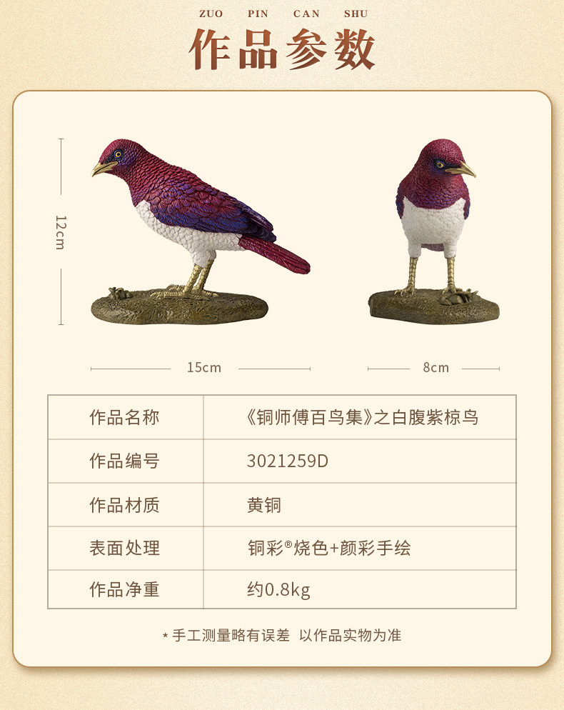 铜师傅 铜摆件《铜师傅百鸟集》之白腹紫椋鸟 家居饰品 桌面摆件