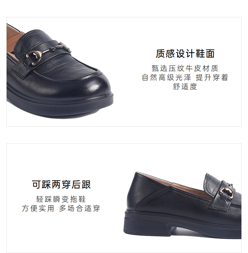 千百度厚底圆头玛丽珍鞋女羊皮小皮鞋乐福鞋浅口单鞋A25468962