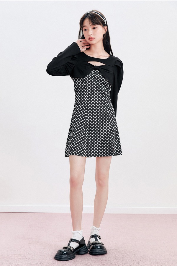 LED'IN 蝴蝶结拼接碎花波点连衣裙 17018