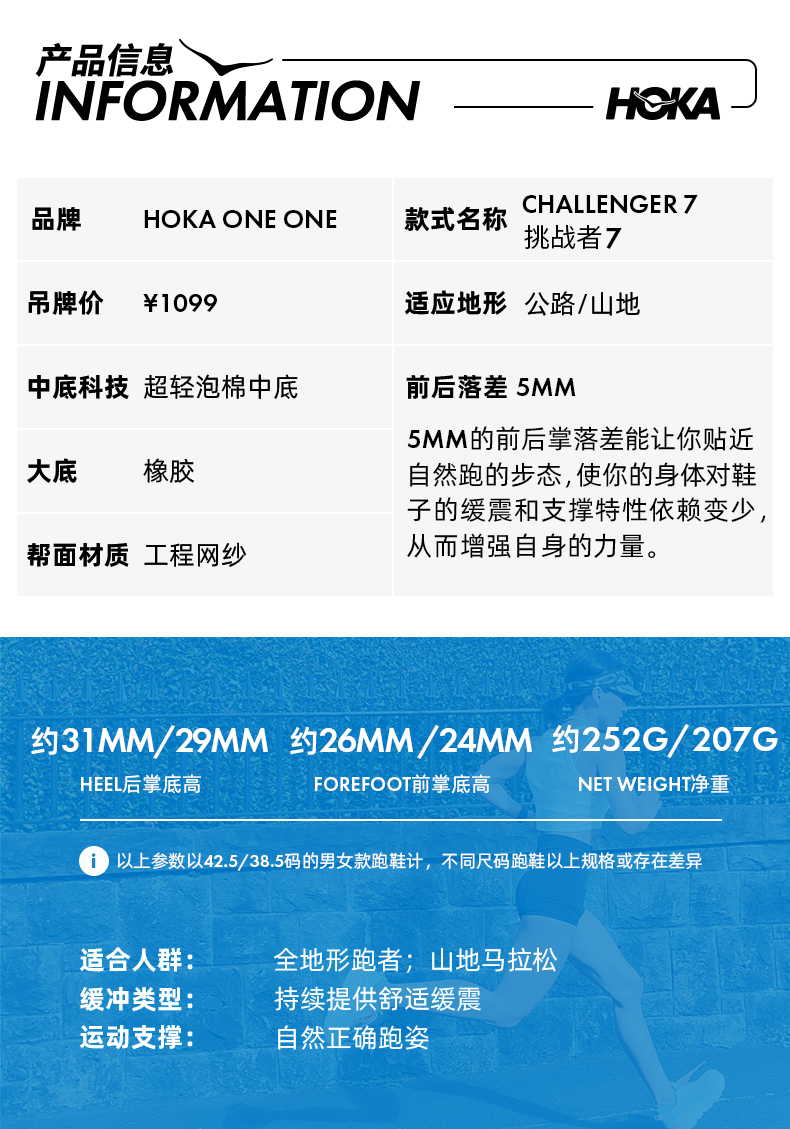 品名:HOKA ONE ONE 挑战者7 CHALLENGER 7 全地形跑步鞋