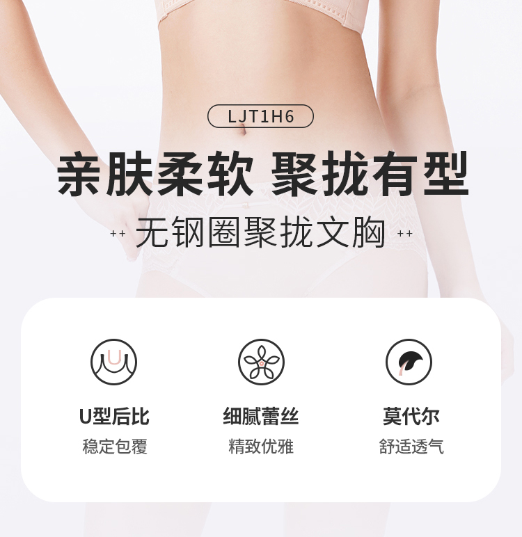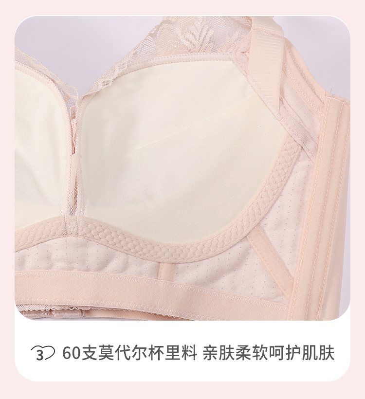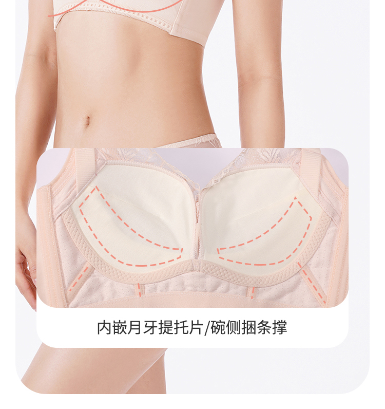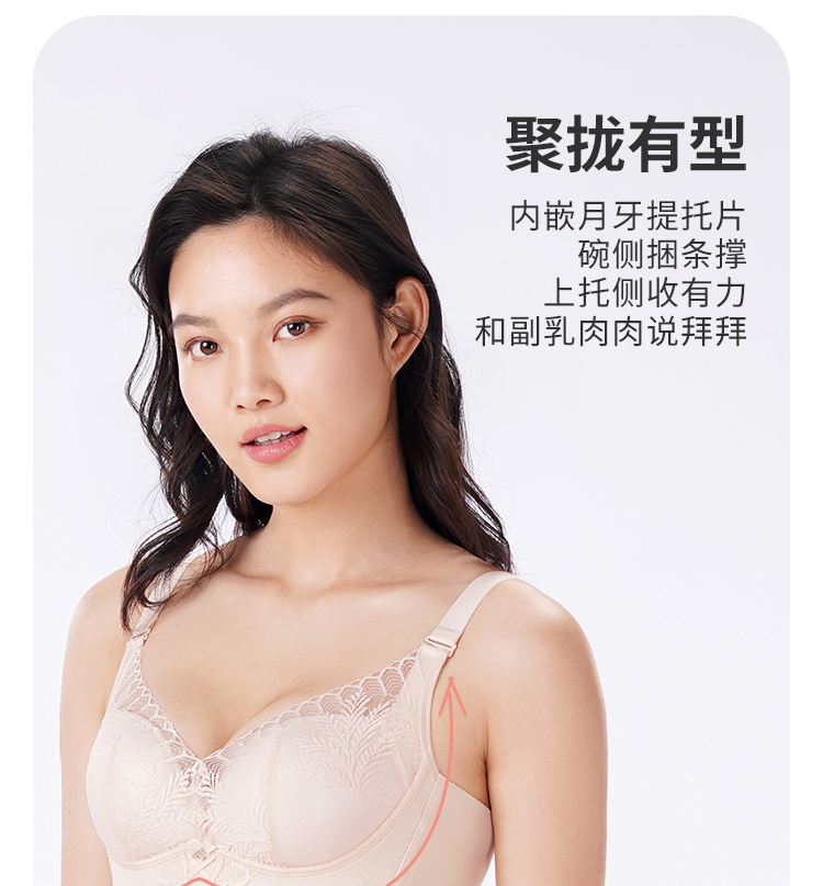 【周笔畅同款】都市丽人舒软挺塑蜜桃杯加加厚款蕾丝调整型文胸5/8杯塑身文胸无钢圈内衣五排扣LJ31H1