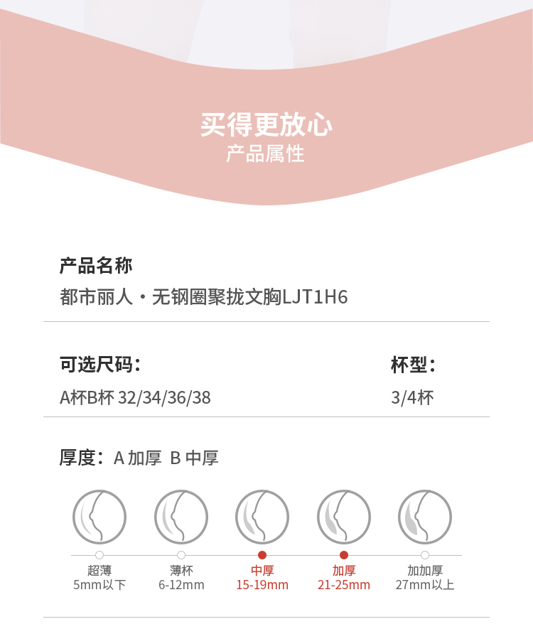 都市丽人调整型内衣舒软挺塑塑身文胸蕾丝A:加厚B:中厚塑身内衣3/4杯四排扣LJT1H6