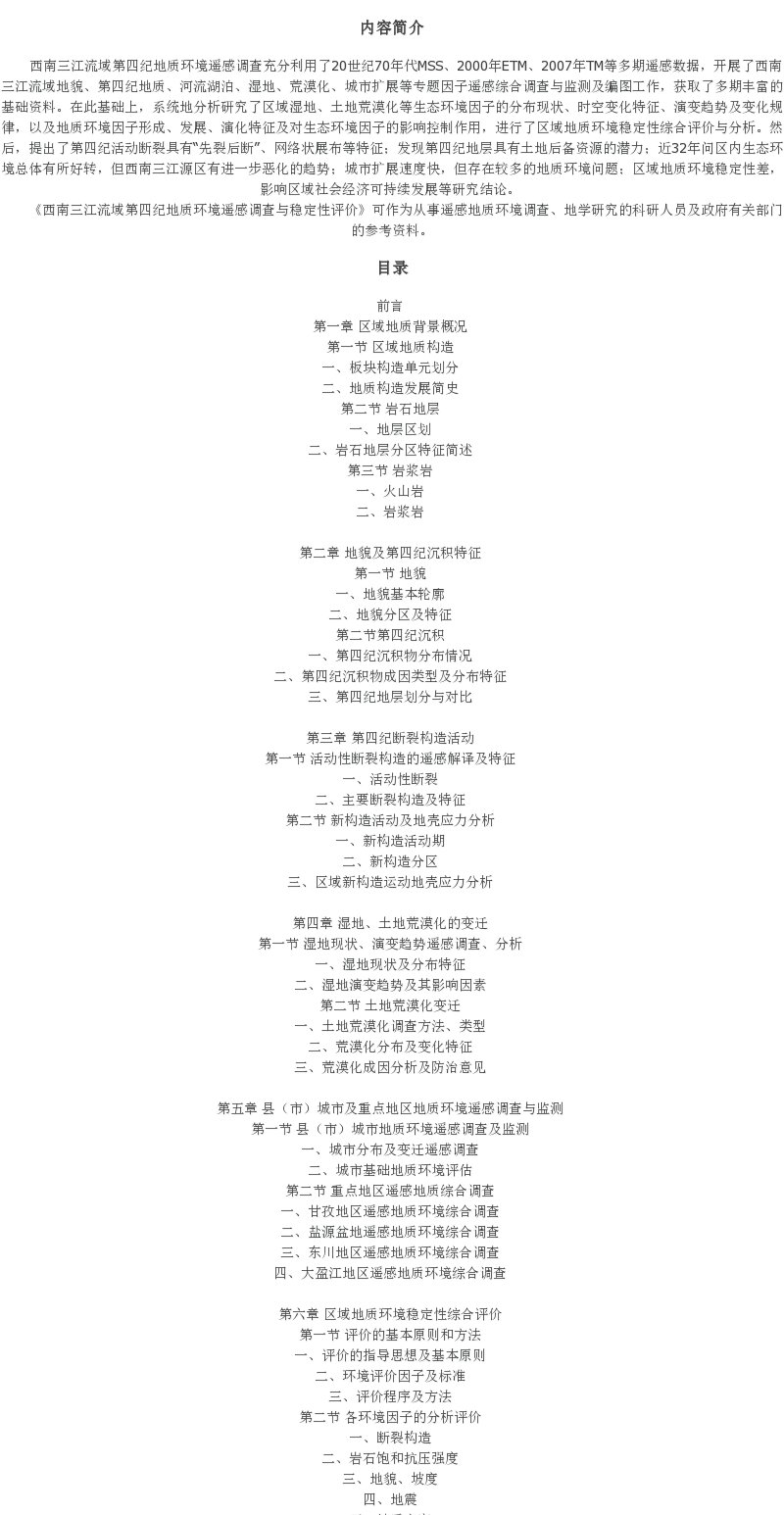 《西南三江流域第四纪地质环境遥感调查与稳定性评价》(黄洁,赵志芳,范敏,等)