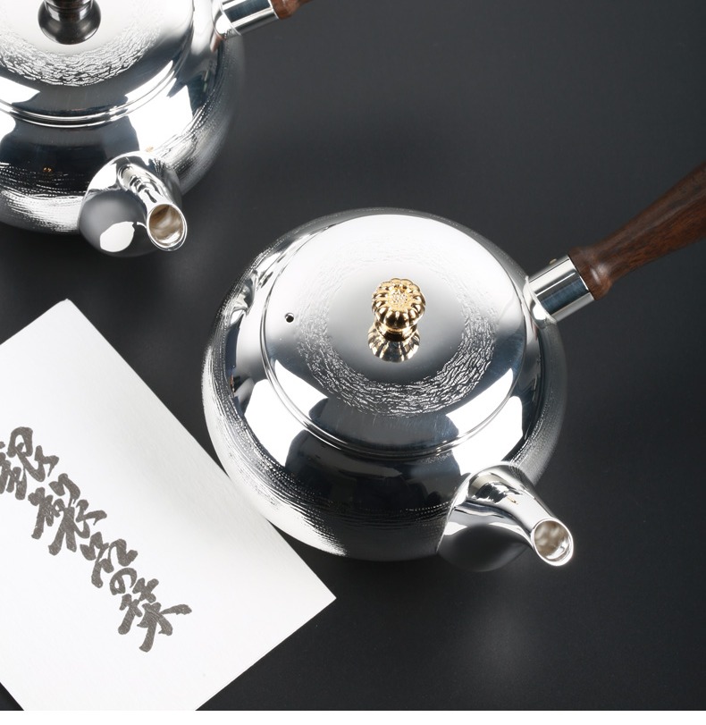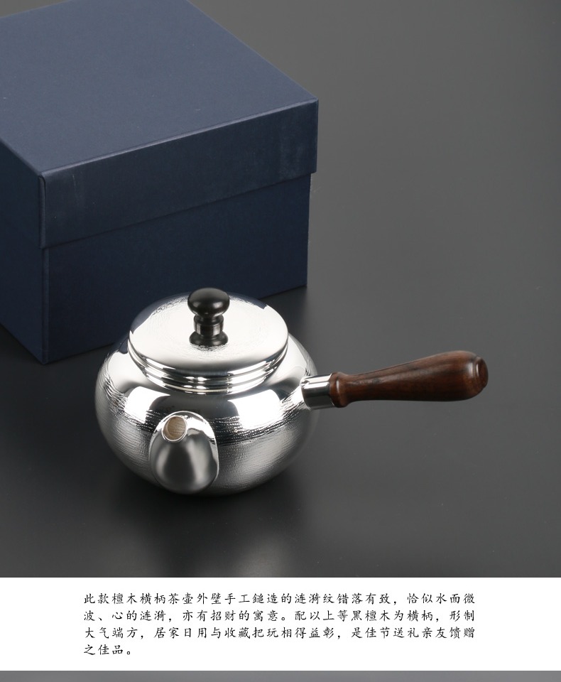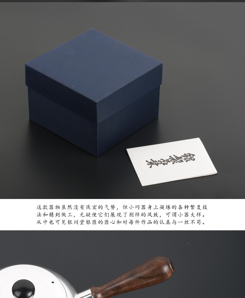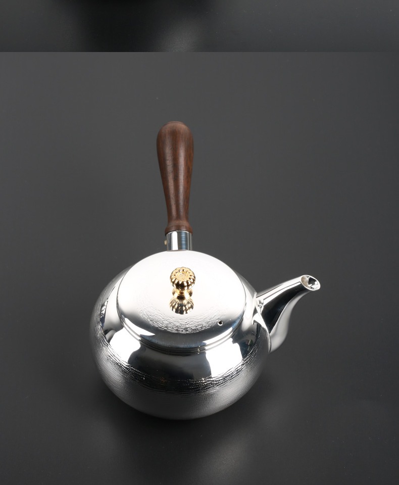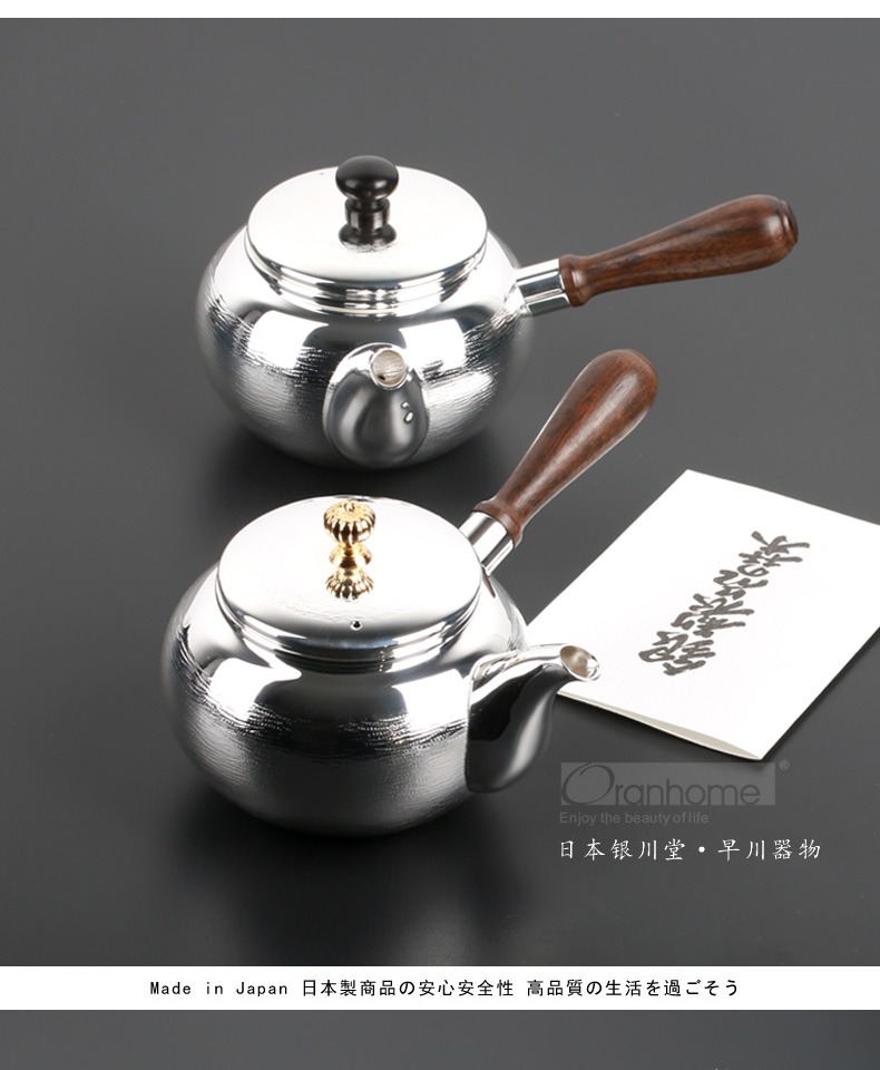日本进口银川堂 银本铺铜胎镀银檀木侧把亮银急须泡茶壶 功夫茶具