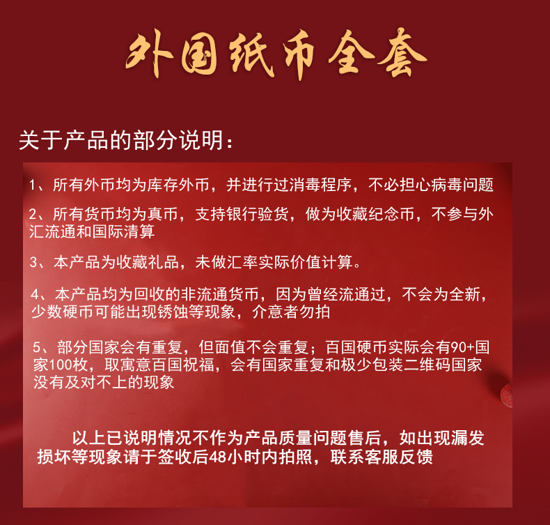 2、纸币硬币保证真币,支持银行验货,均为收藏纪念币,不参与外汇流通和国际清算。