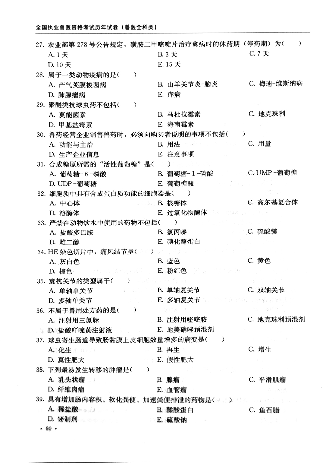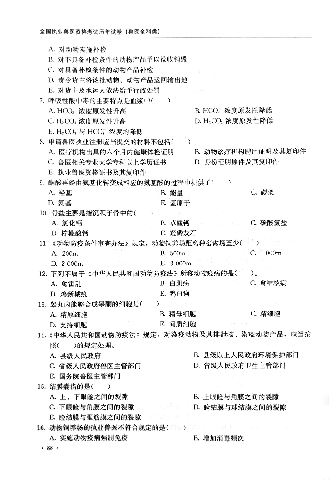全国执业兽医资格考试历年试卷(兽医全科类)【中国农业出版社官方正版,可开发票】
