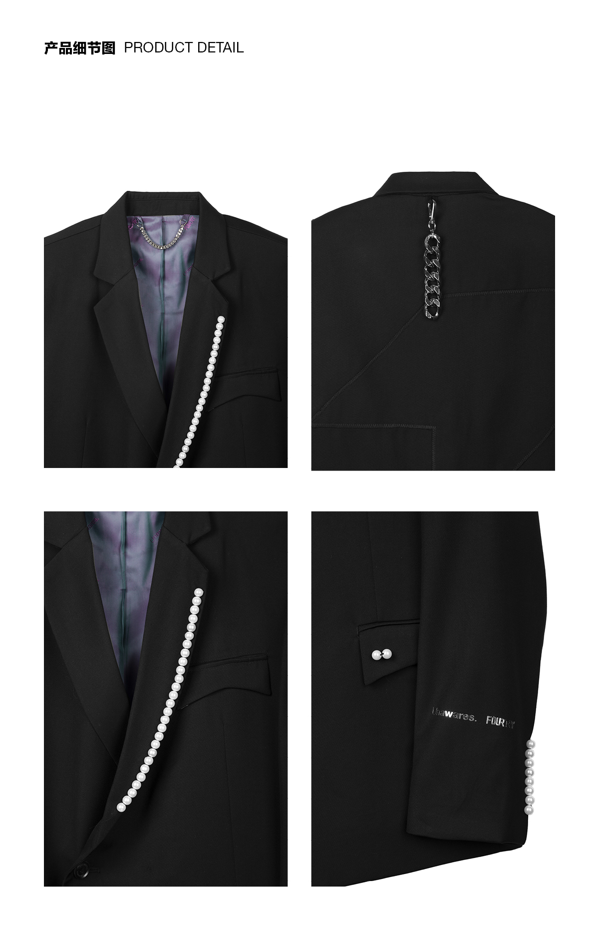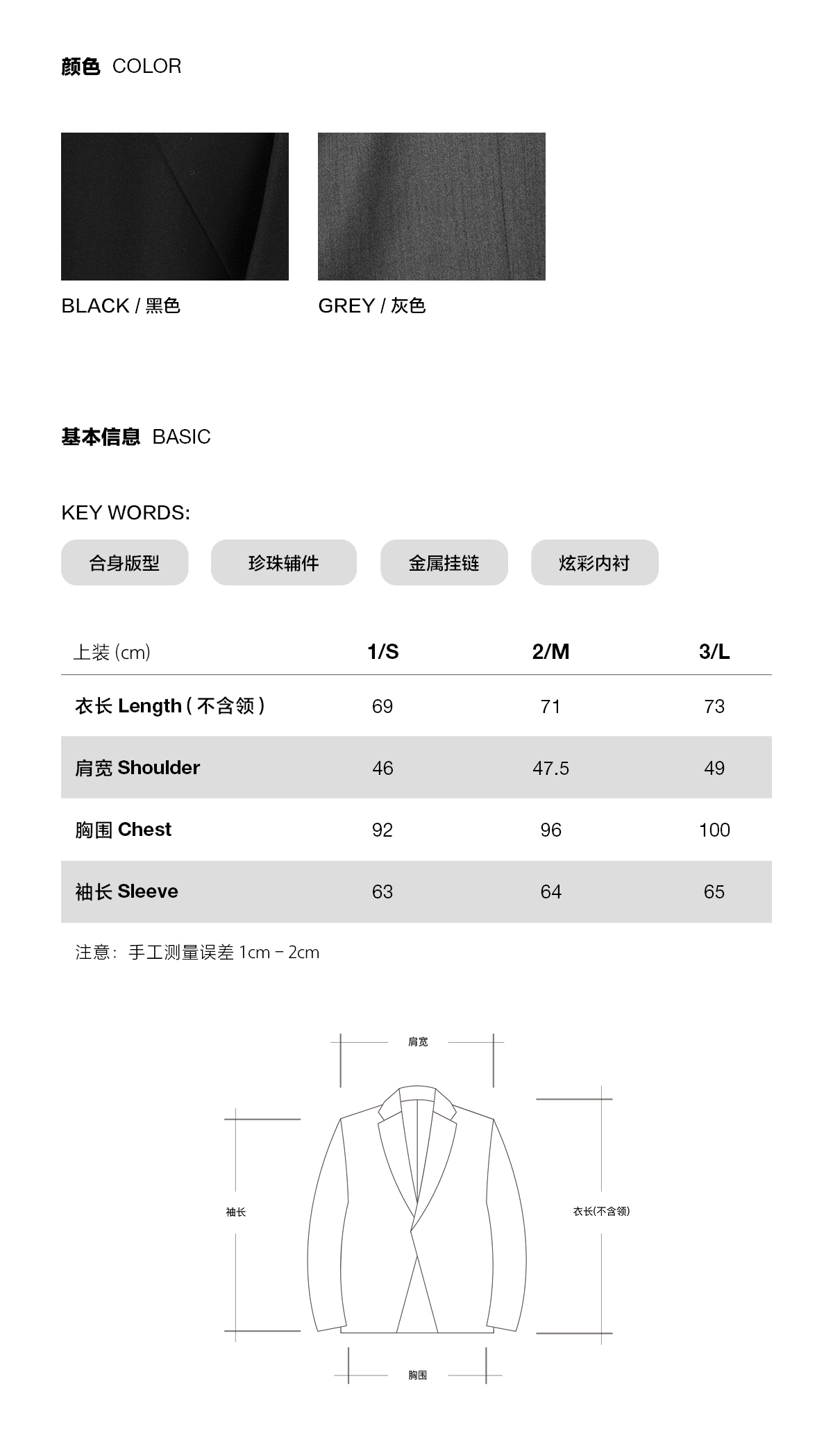 | 图案: 纯色 | 衣门襟: 一粒双排扣 |