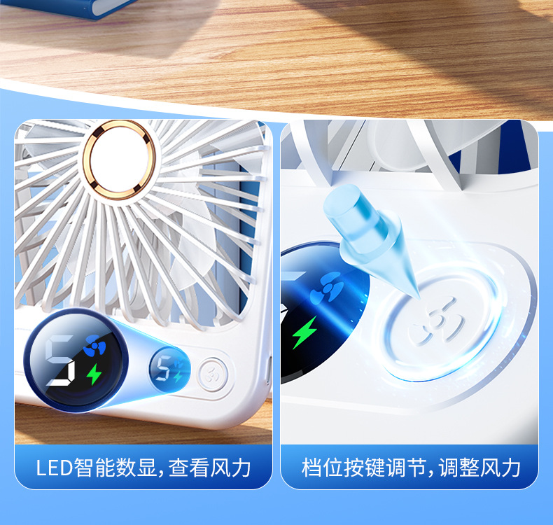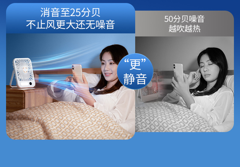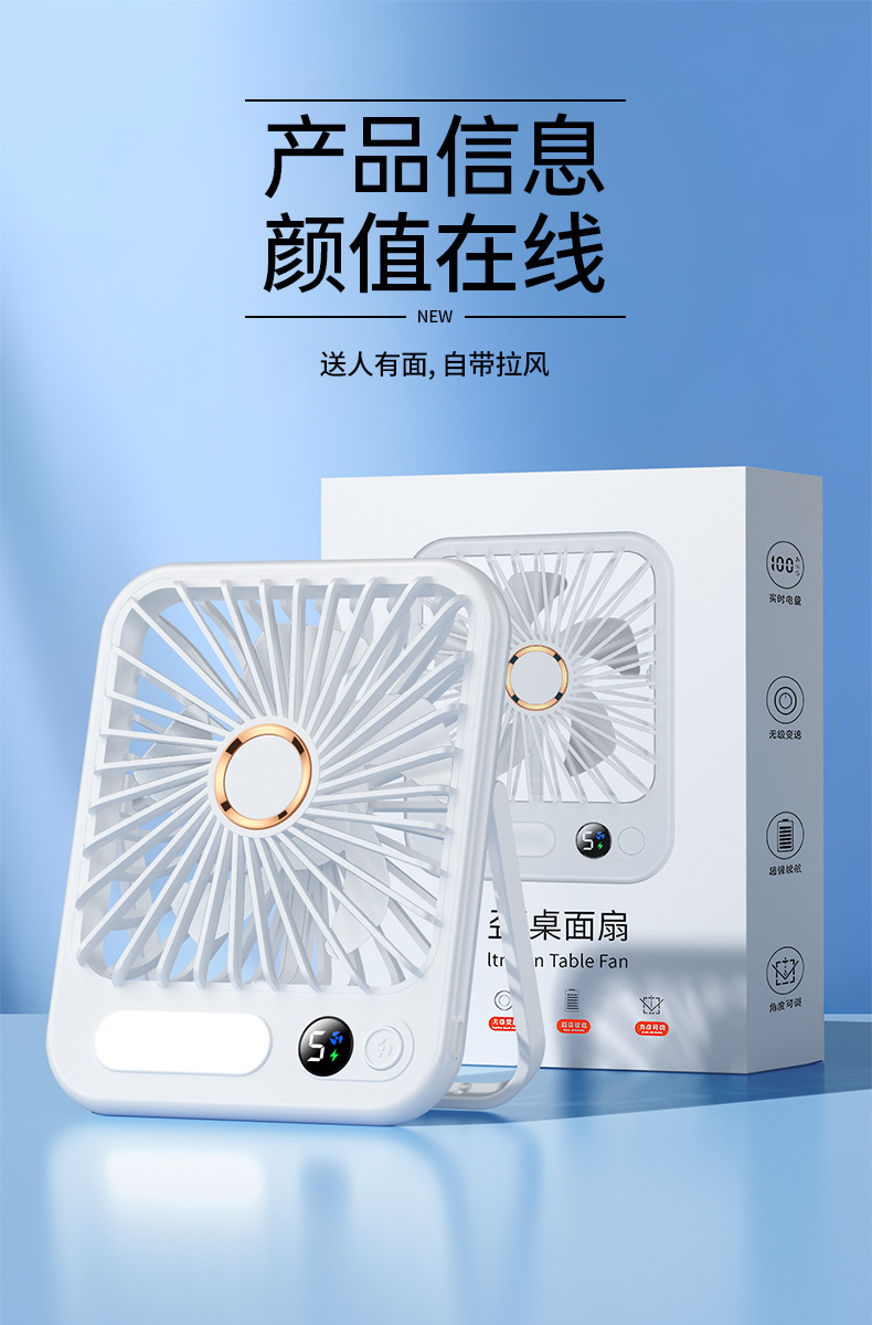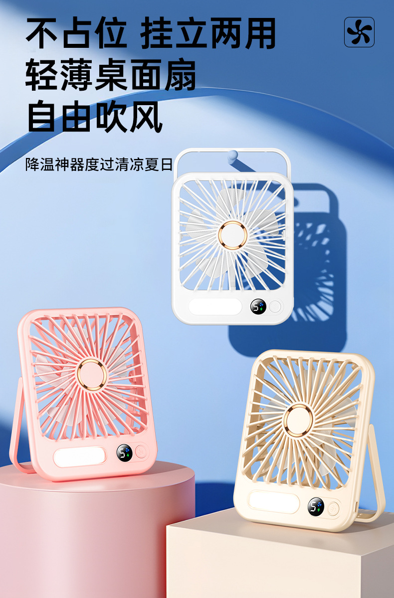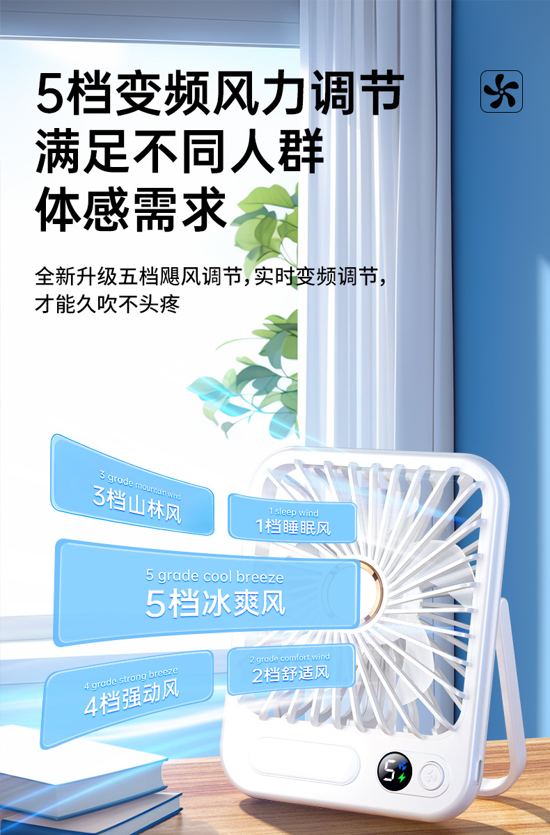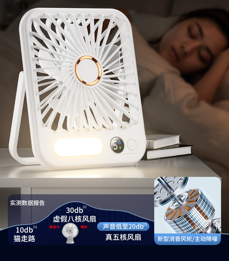 【比空调还凉快!】2025新款桌面usb充电小风扇 智能变频五档 温馨小夜灯 桌面悬挂两用 超轻静音小型风扇 学生宿舍 办公室强力电风扇 迷你便携折叠式