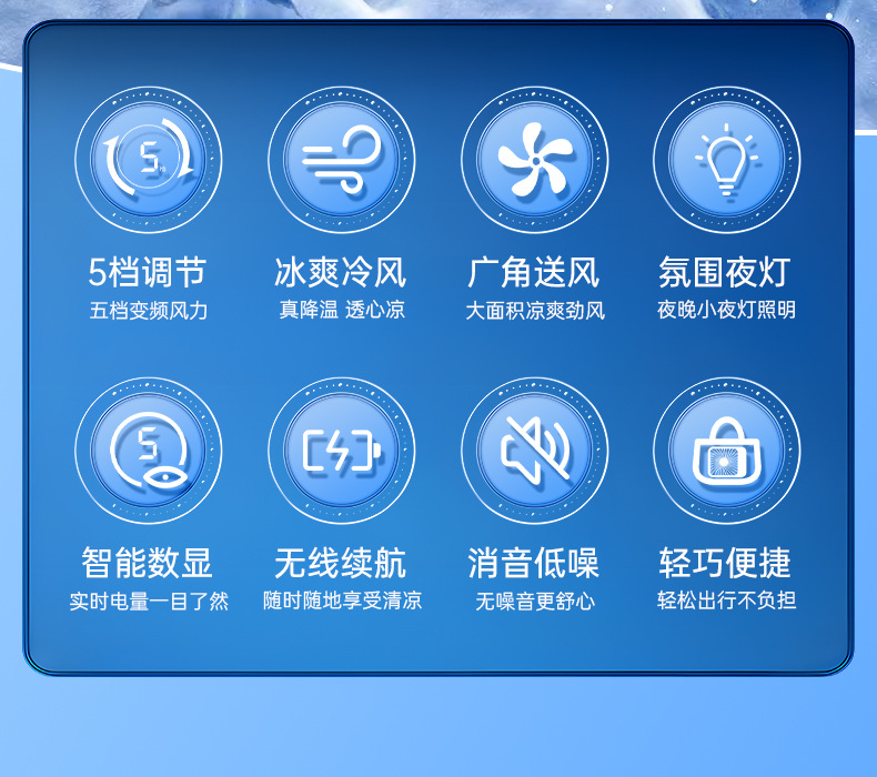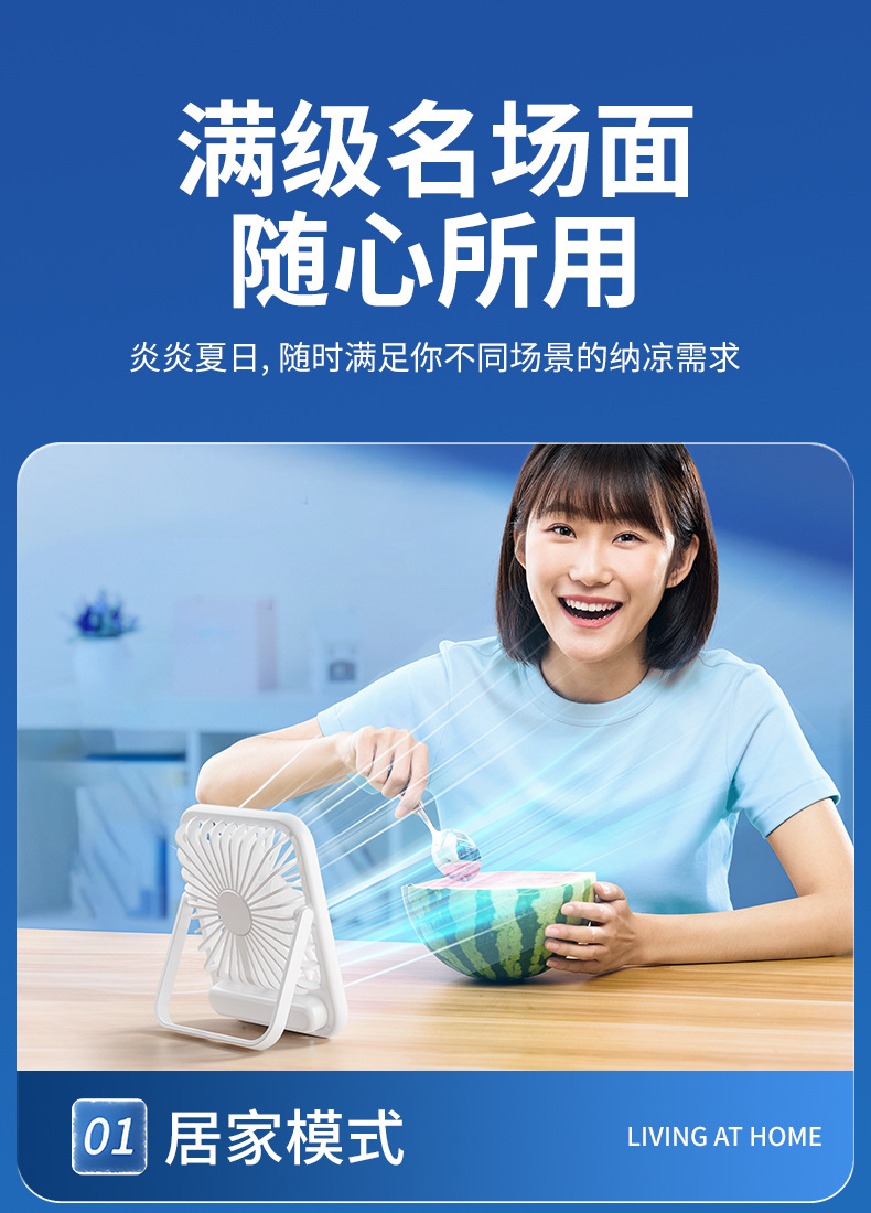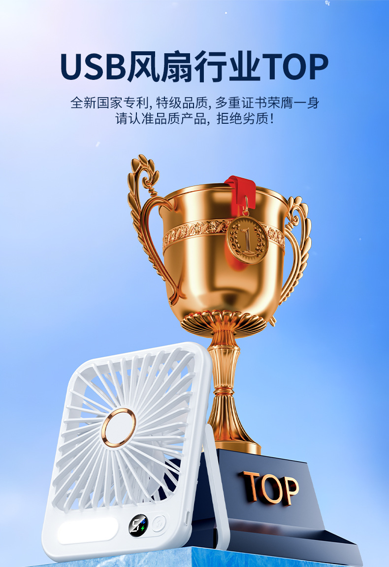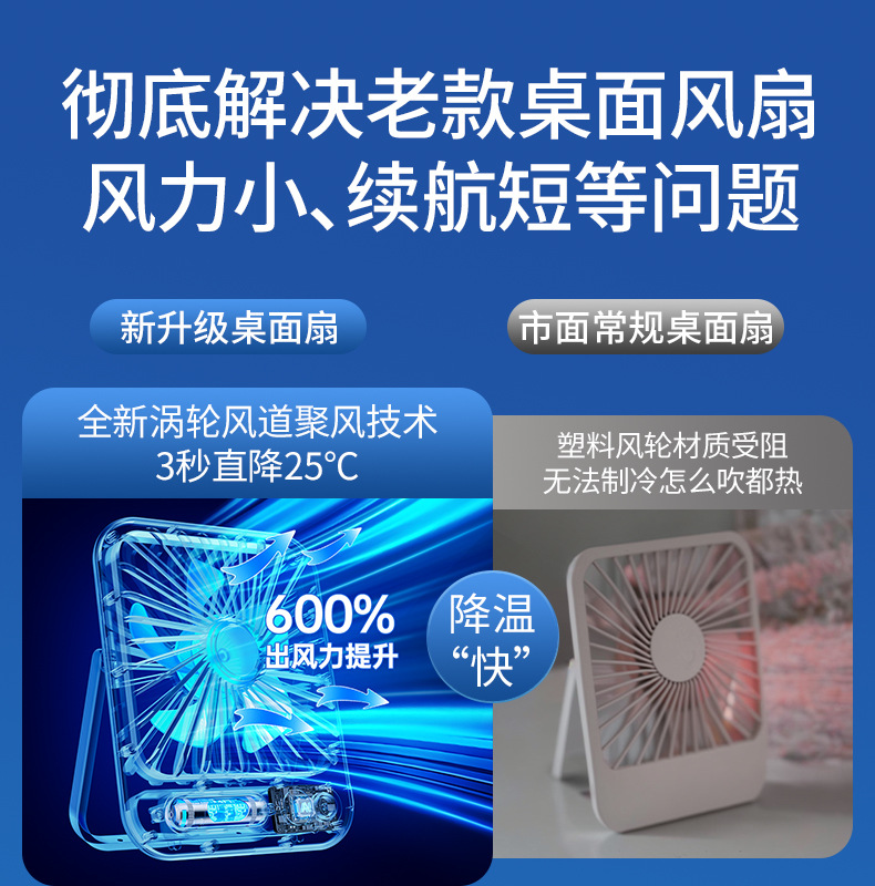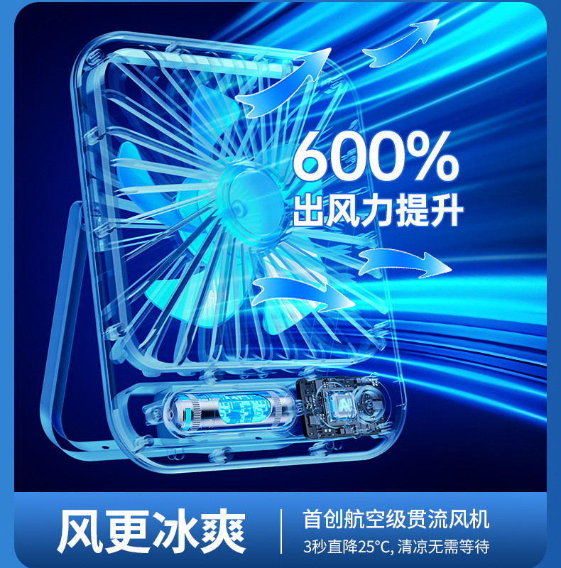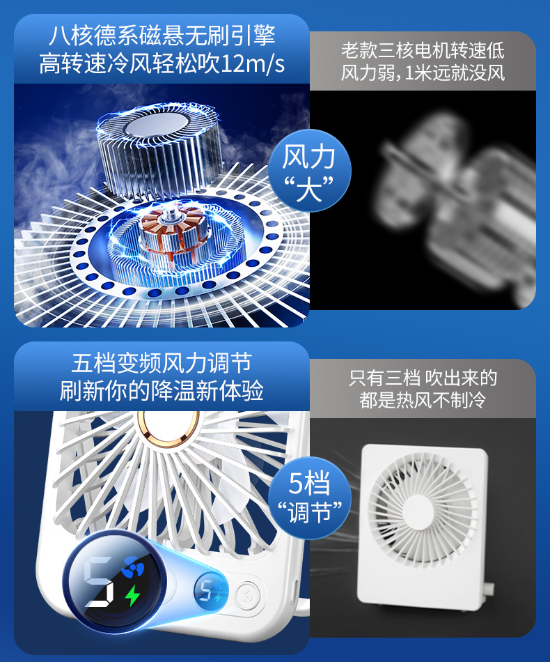 【比空调还凉快!】2025新款桌面usb充电小风扇 智能变频五档 温馨小夜灯 桌面悬挂两用 超轻静音小型风扇 学生宿舍 办公室强力电风扇 迷你便携折叠式