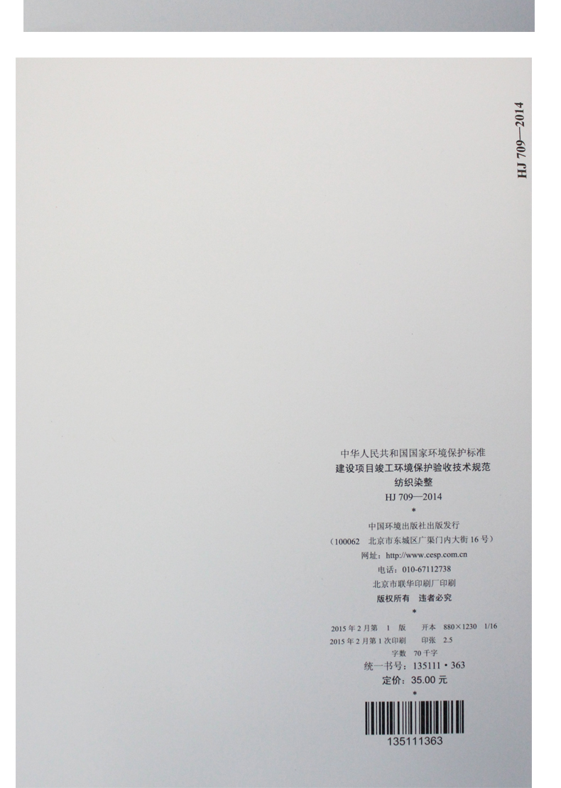HJ 709-2014 建设项目竣工环境保护验收技术规范纺织染整 国家标准GB 环境科学环境保护 135111363
