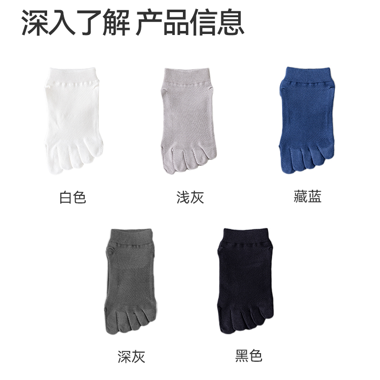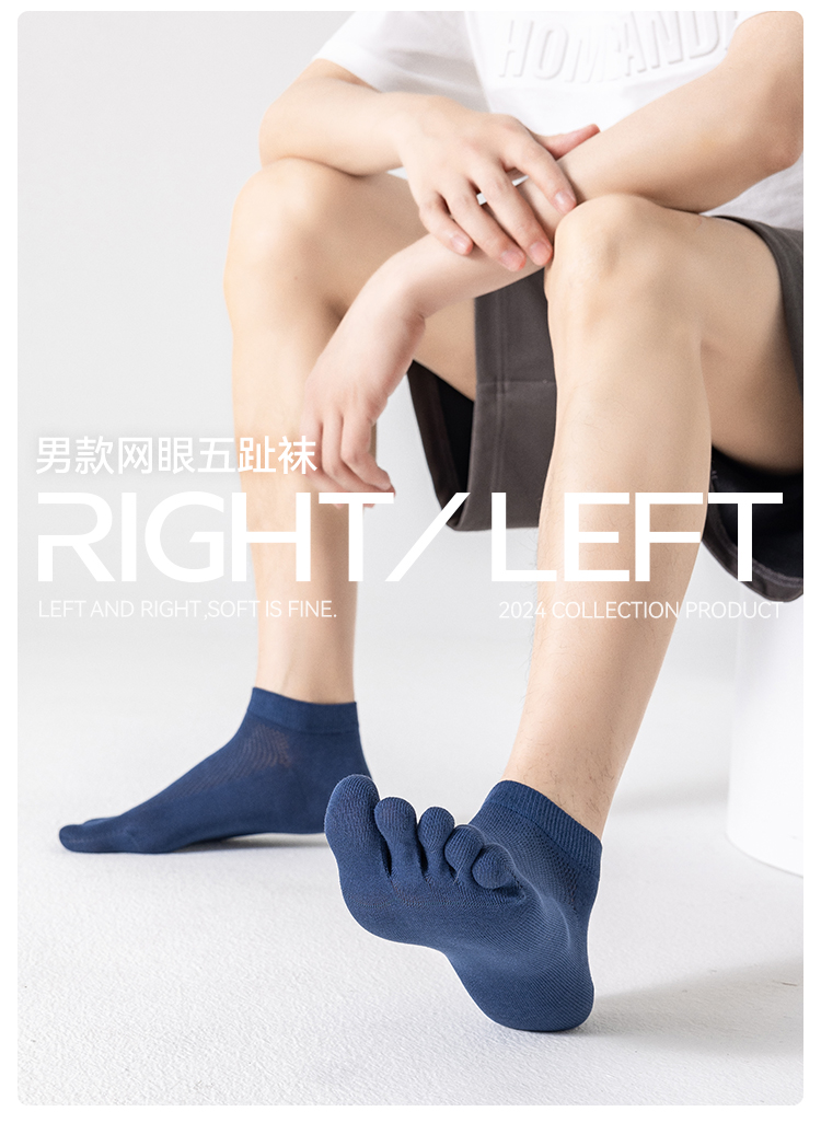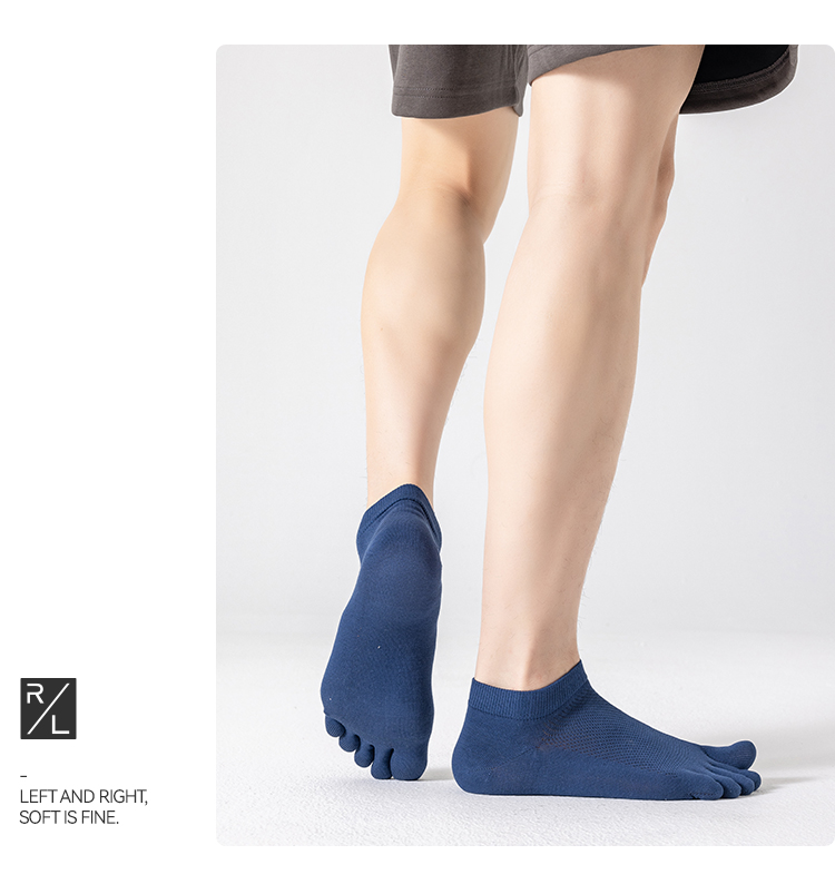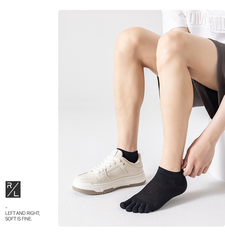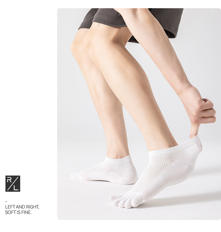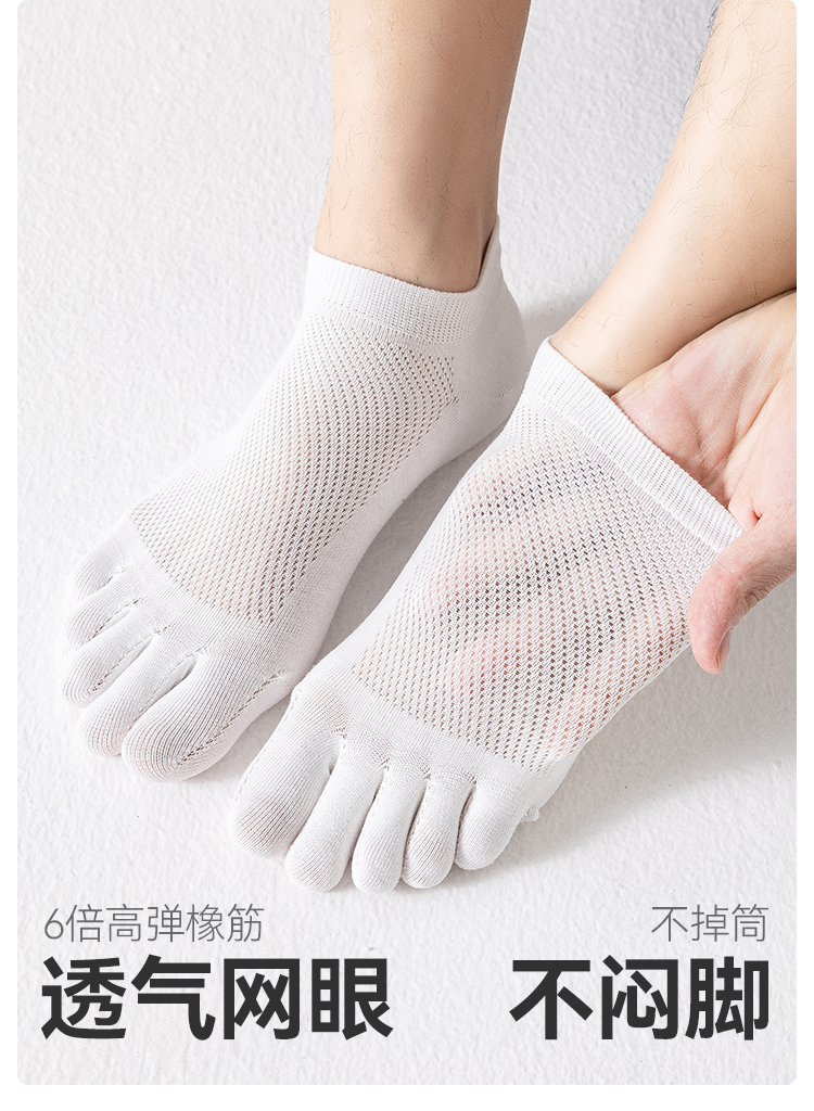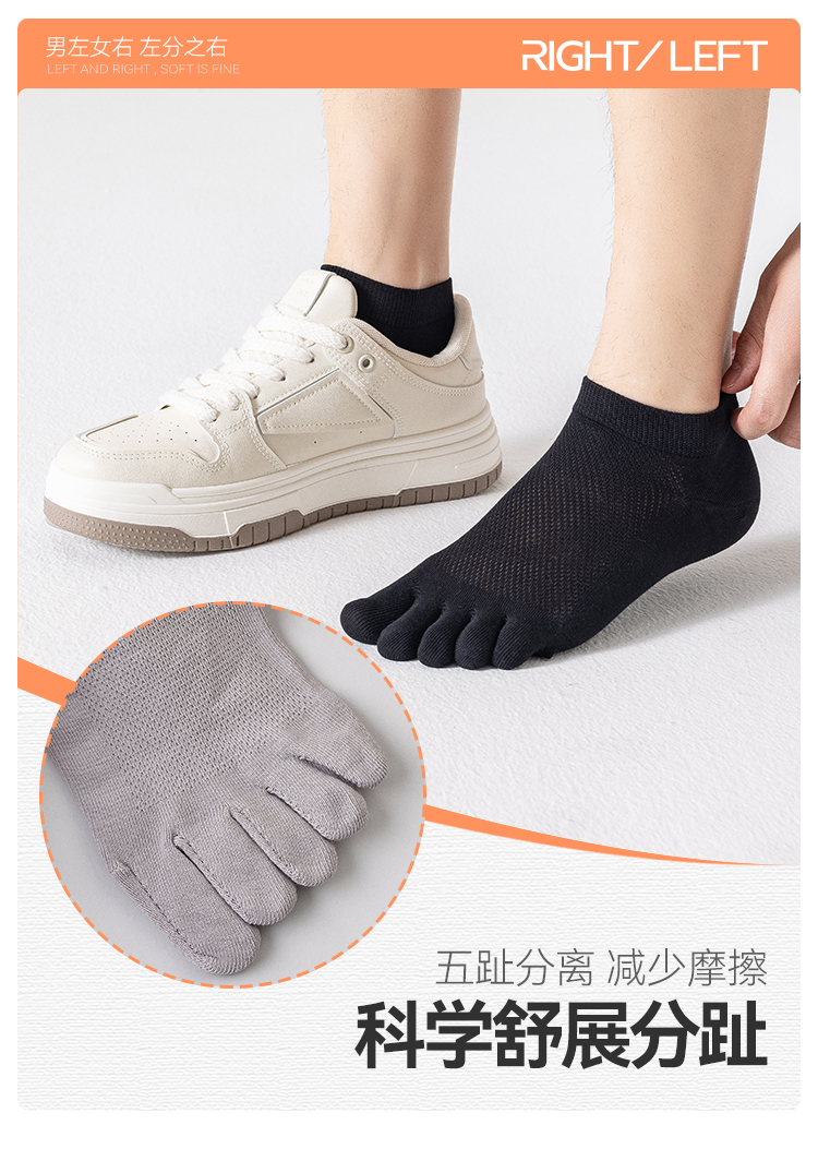 左分之右五指袜子男夏季网眼薄款纯棉10A抗菌男士无骨分趾袜船袜