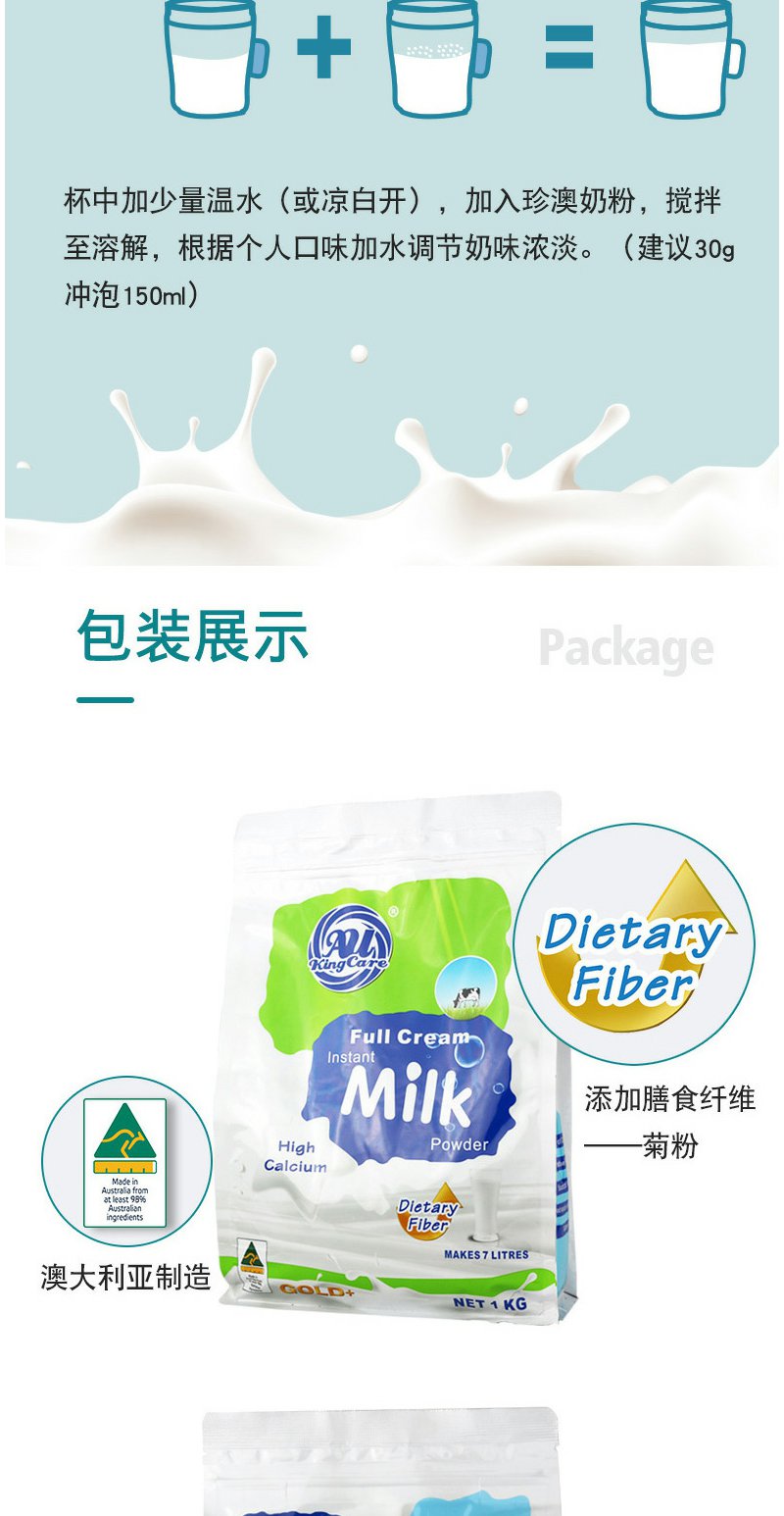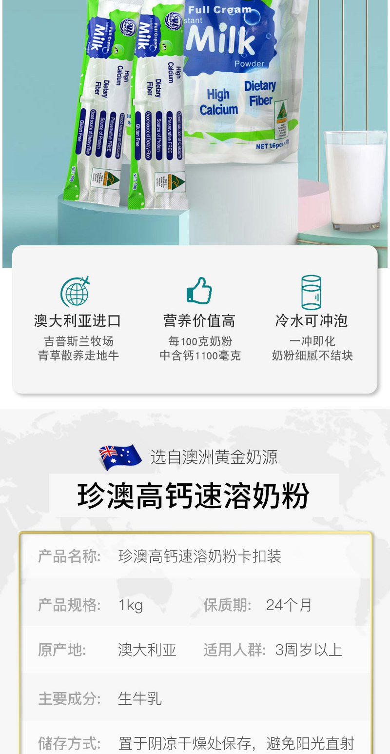 珍澳高钙全脂/脱脂成人奶粉卡扣装*1kg