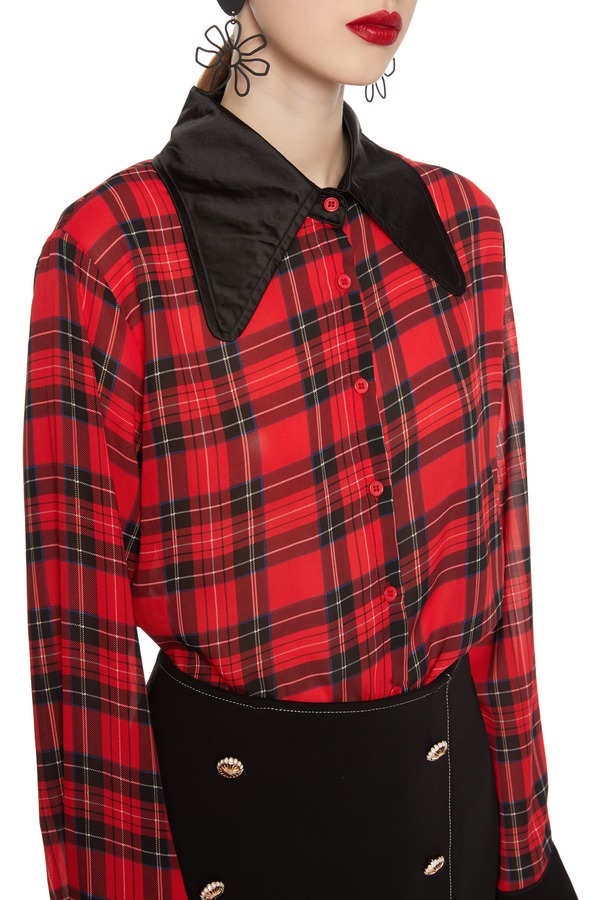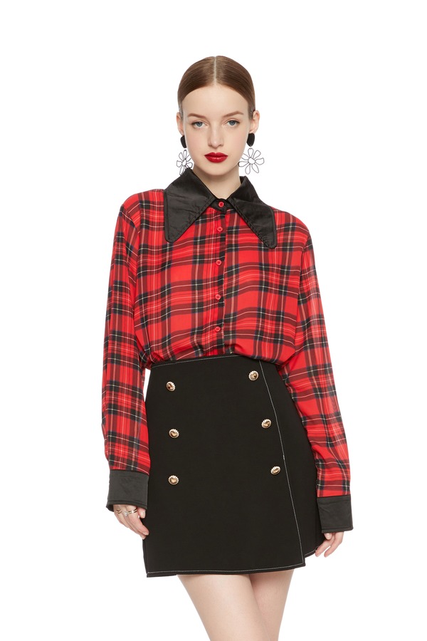 AVA 英伦风格纹翻领衬衣 5981