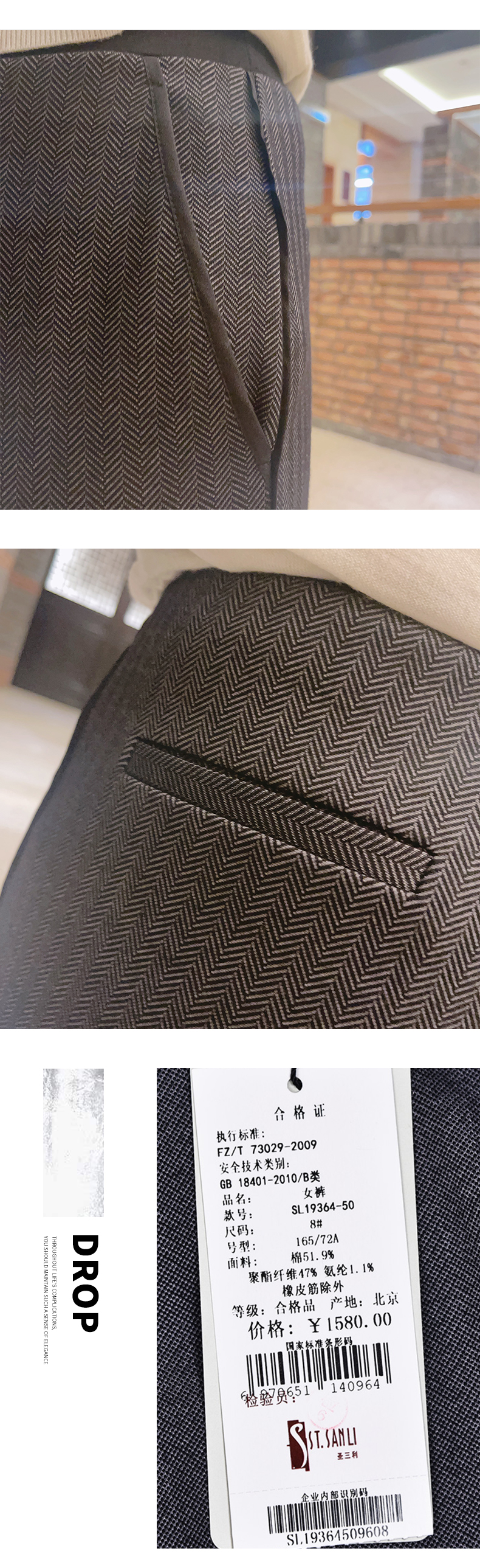 圣三利女装 新款简约时尚锥形纯色肌理九分烟管女裤SL2016120