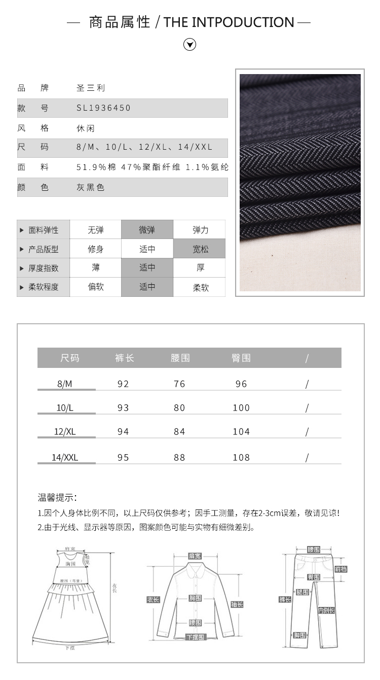 圣三利女装松紧腰休闲束脚裤SL1936250