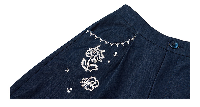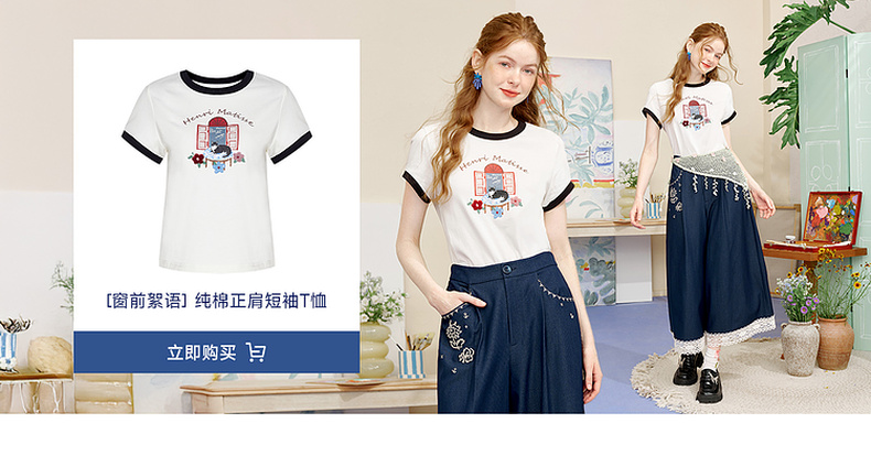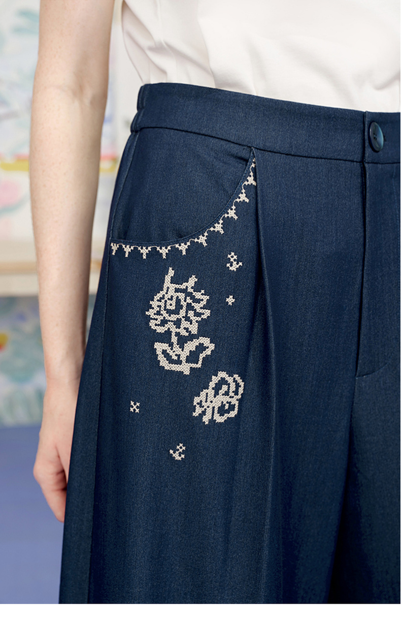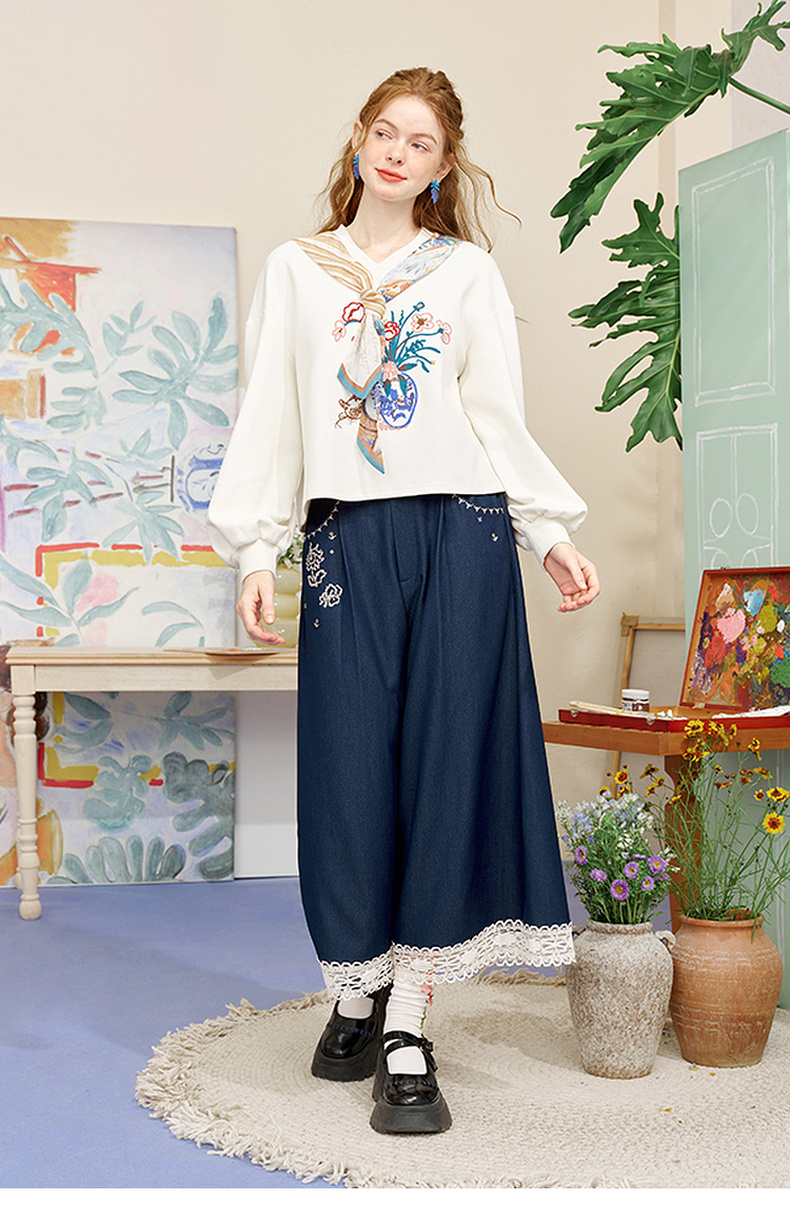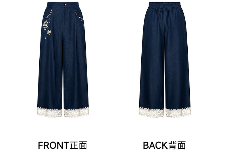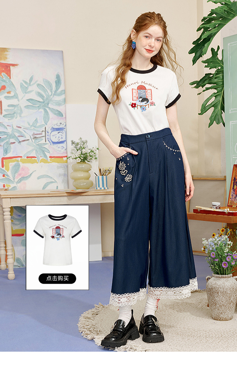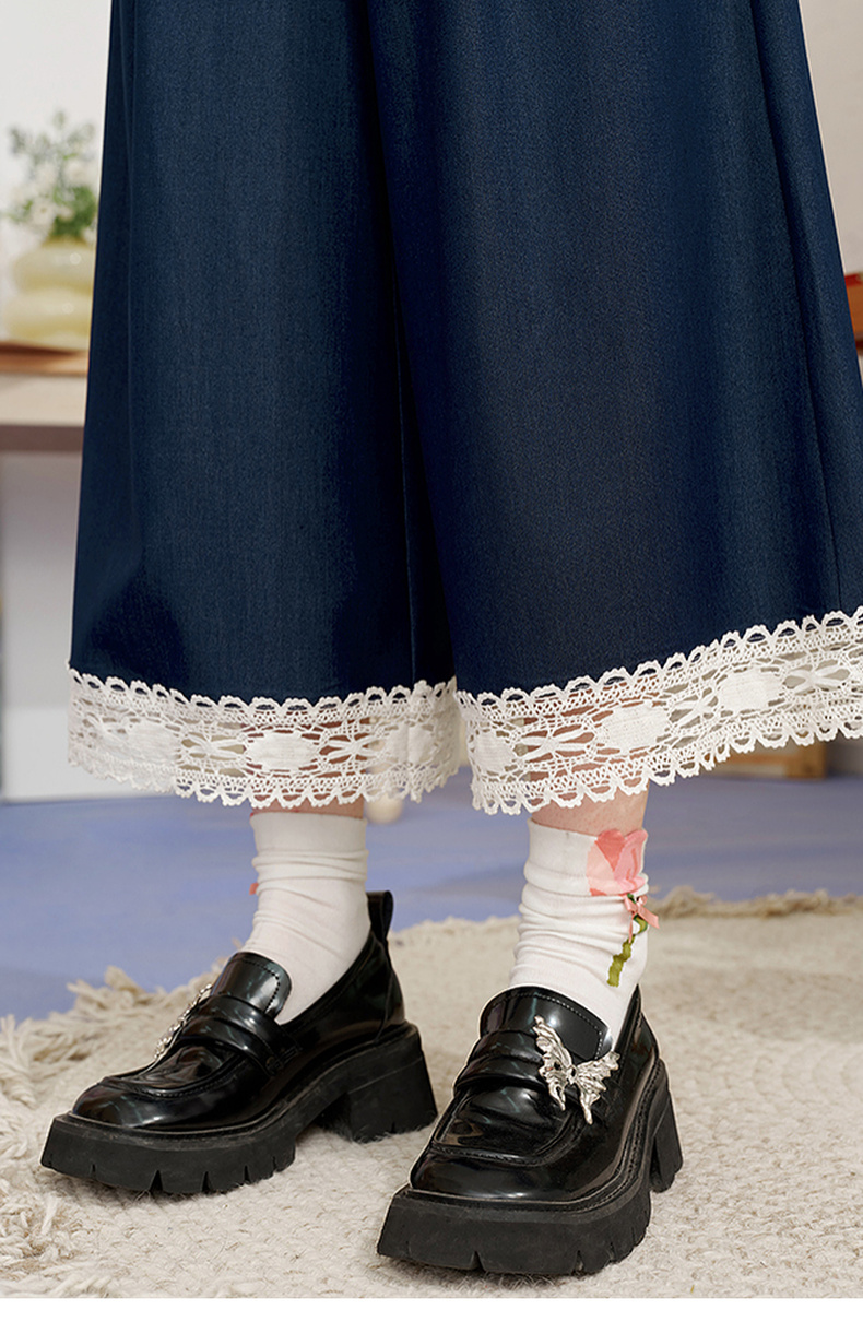两三事像素派对2025夏新款森女风蕾丝拼接刺绣七分裤阔腿休闲裤女