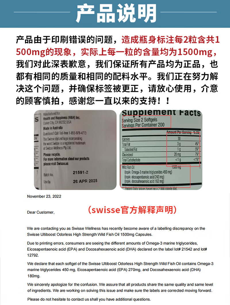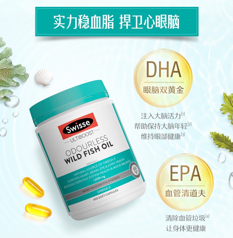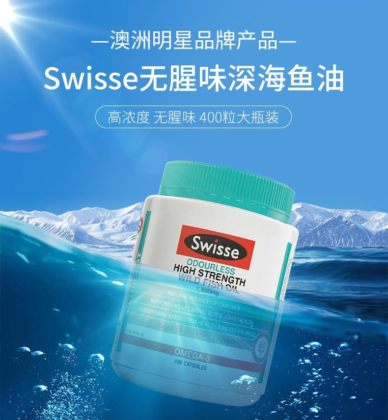 【海豚美购】Swisse斯维诗无味高浓度深海鱼油1500mg400粒